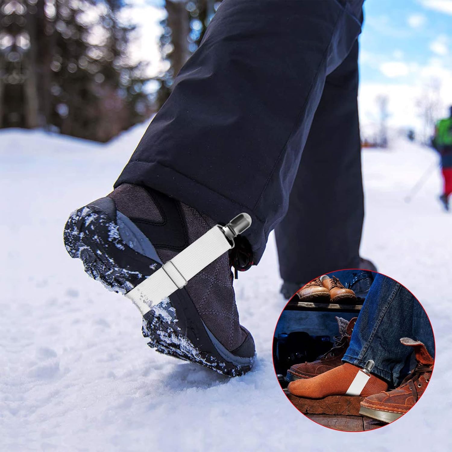 - Suitable occasions: The boot straps are attached to your pants and jeans to help you make your leg slim, which can match your pants, boots, suitable for sheet stretching, biking, skiing and other occasions