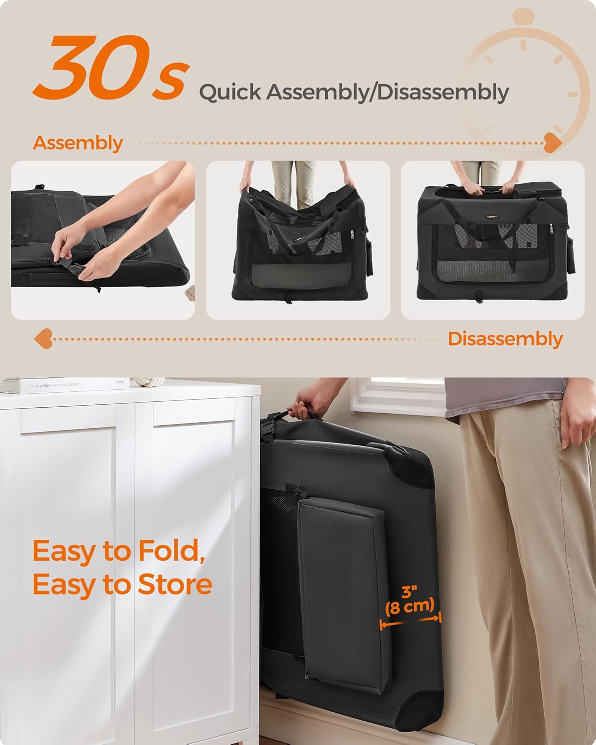 Feandrea 36 Inches Collapsible Soft Dog Crate, Portable Travel Dog Crate for Indoor and Outdoor Use, Dog Carrier Kennel with Safety Zippers, for Living Room, Car, Travelling, Camping, Black UPDC90H