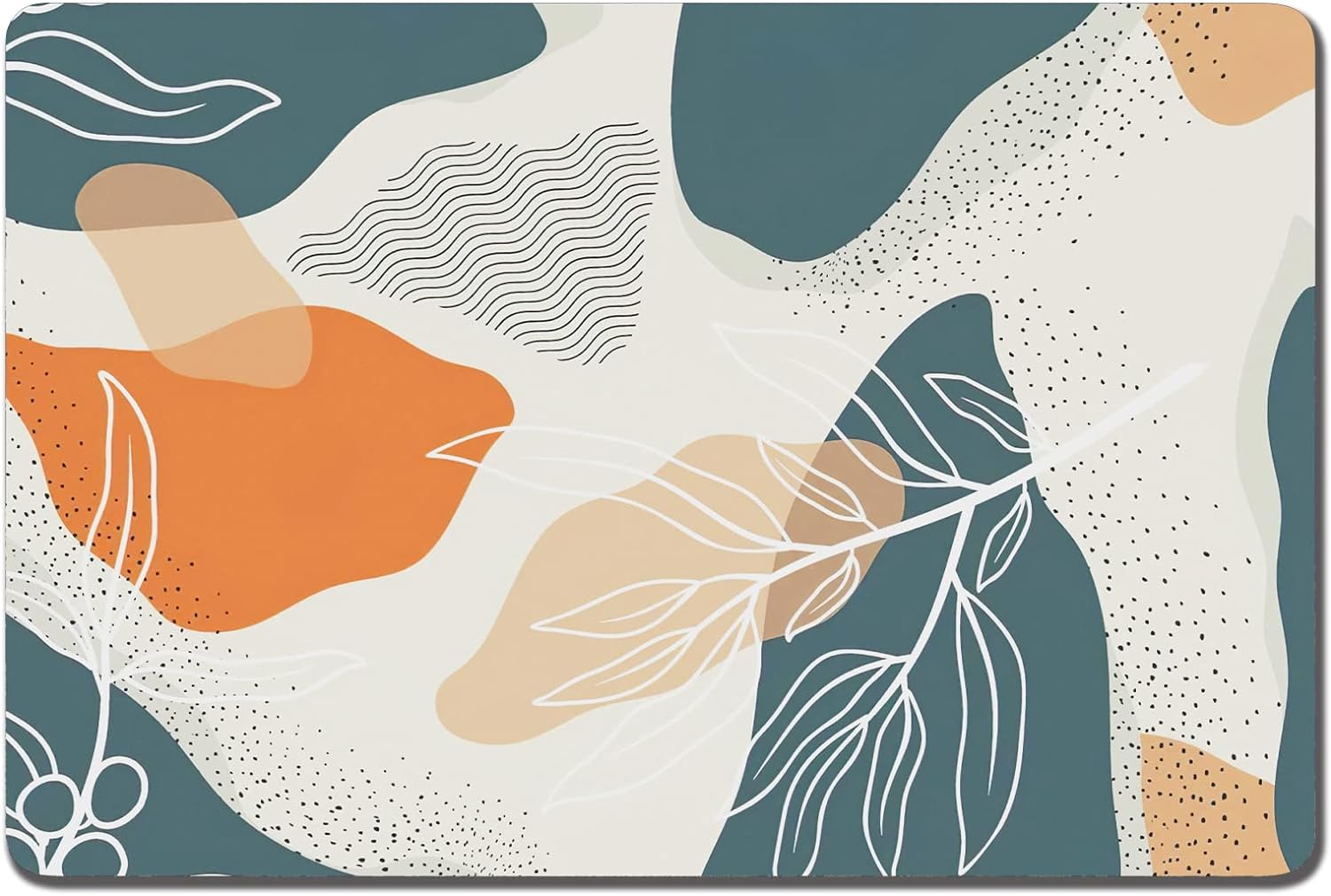Rnivvi Dog Food Mat, 16" x 24" Boho Absorbent Dog Cat Bowl Mat for Food and Water, Cute Anti-Slip Rubber Pet Feeding Rug Protect Floors, Puppy Placemat for Feeding & Watering Supplies, Abstract Leaves
