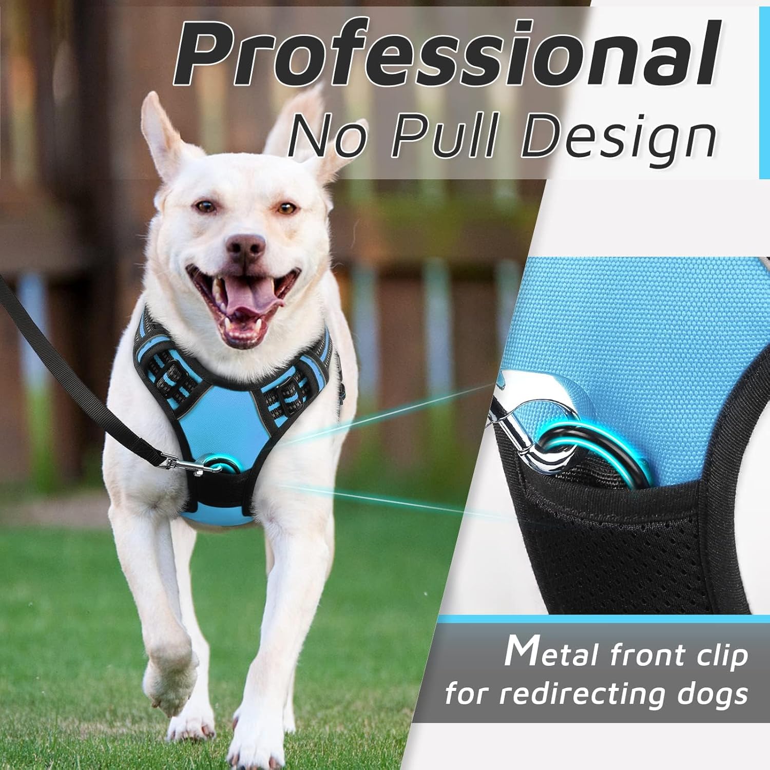 Eagloo Dog Harness Medium Sized Dog, No Pull Service Vest with Reflective Strips and Control Handle, Adjustable and Comfortable for Easy Walking, No Choke Pet Harness with 2 Metal Rings, Sky Blue, M