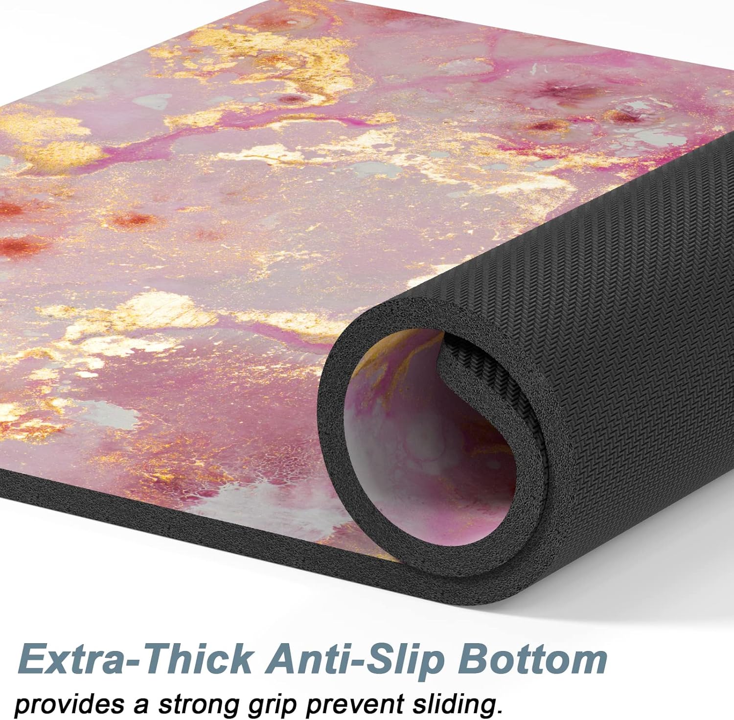 Rnivvi Dog Food Mat, 12" x 19" Absorbent Dog Cat Bowl Mat for Food and Water, Cute Anti-Slip Rubber Pet Feeding Rug Protect Floors, Puppy Placemat for Feeding & Watering Supplies, Pink Gold