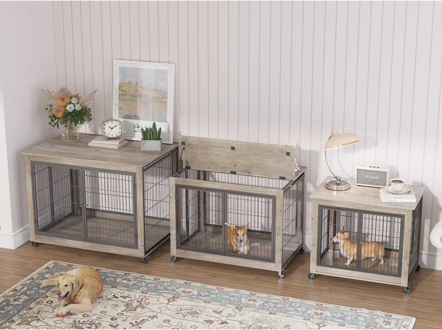 - [Side Door Design] This dog kennel furniture comes with 3 doors (2 front door and 1 side door) for your dog to go in and out easily. This furniture style dog crate is ideal for dogs that like to come and go as they please and are active.