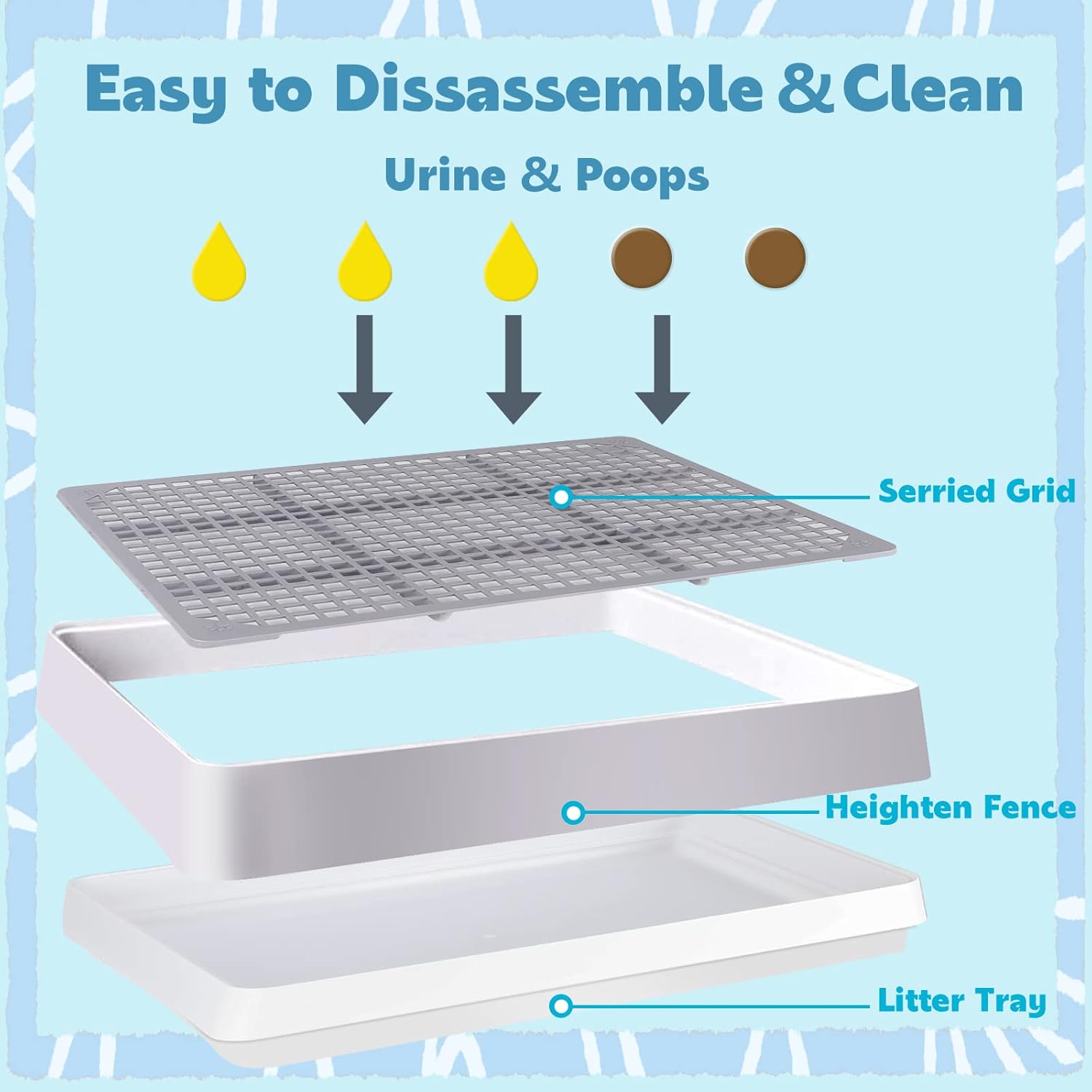 - Rabbit Tray in Grid Design: The 0.39 x 0.39 inches mesh is right size, preventing the small animal's feet from being easily stuck in the rabbit potty box and injured; It is worth mentioning that the rich and serried mesh makes the urine to flow more fully to the rabbit litter tray bottom, avoiding soil their feet dirty and unhygienic things cause illness