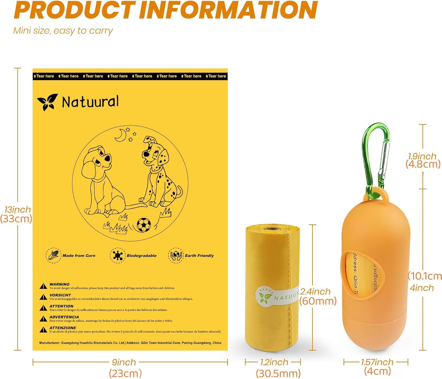 Poop Bags for Dogs-1050 Counts, 70 Rolls With a Free Dispensers, Biodegradable Poop Bags Made of Cornstarch, Size: 9x13 Inch, Extra Thick Strong and 100% Leak Proof (Yellow)