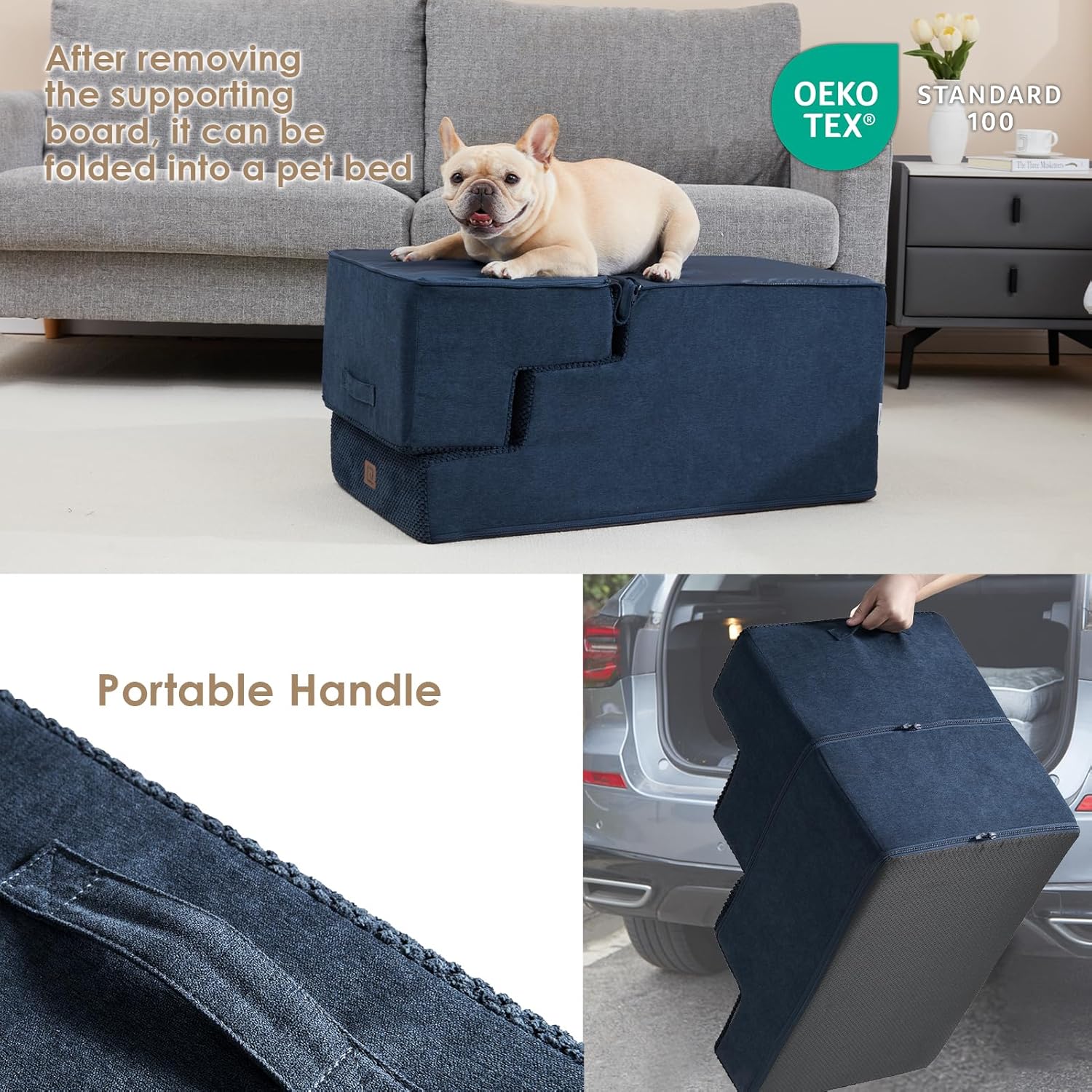 - EASY TO CLEAN - The dog step features a removable and washable cover, which can be cleaned by hand or in the washing machine. This saves you time and makes cleaning incredibly convenient.