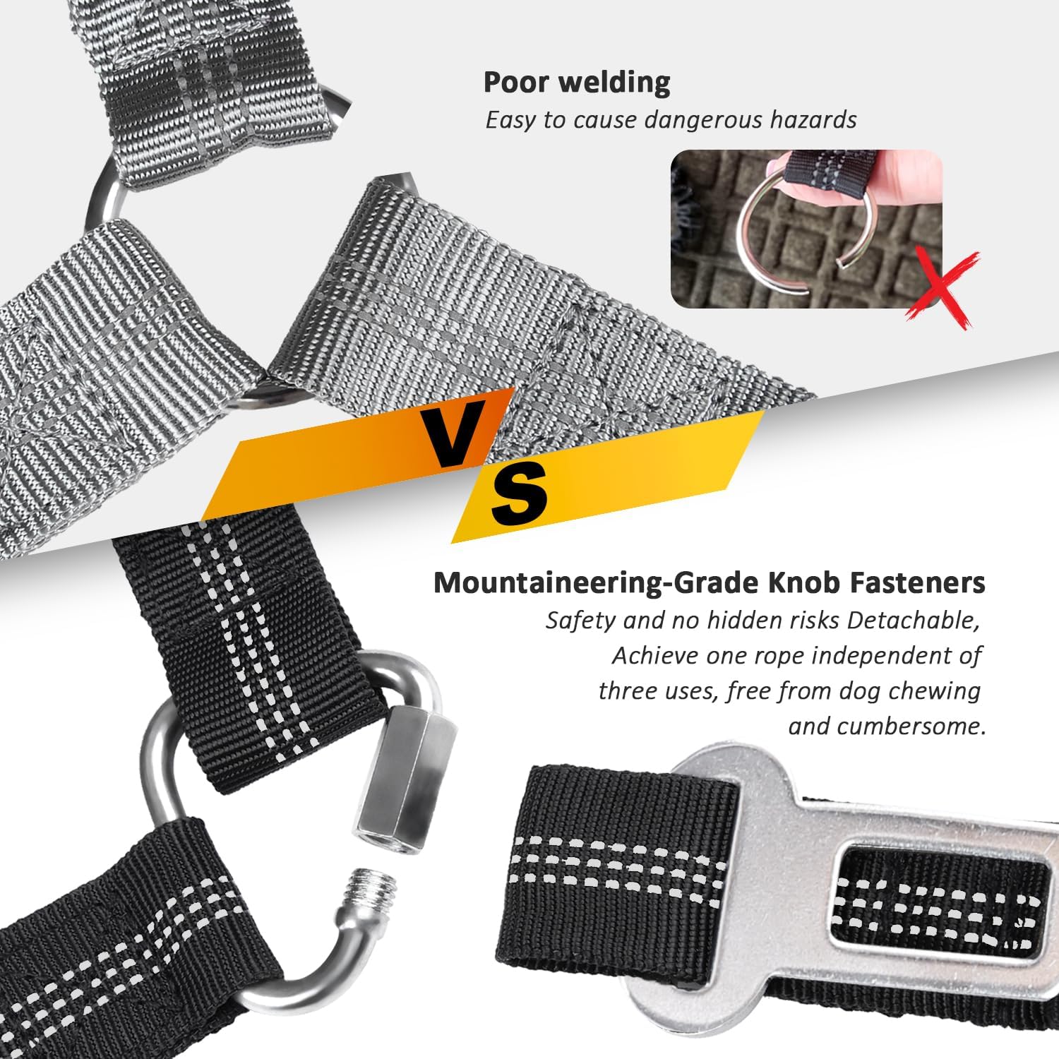 - 🐕【3-in-1 Multiple Uses Designed】 For effective restraint and protection during travel. 👉The dog seatbelt can be hung on the seat back rest 👉or inserted separately in the seat belt buckle, Dog Car Seat Cover,👉Equipped with elastic elastic rope and reflective rope design, can be used as a dog leash, so that you hold the dog partner safe night walk. Dog seat belt harness for car is perfect for pet lovers who like to take their dogs on the road, to ensure the safety of your dog while you drive.
