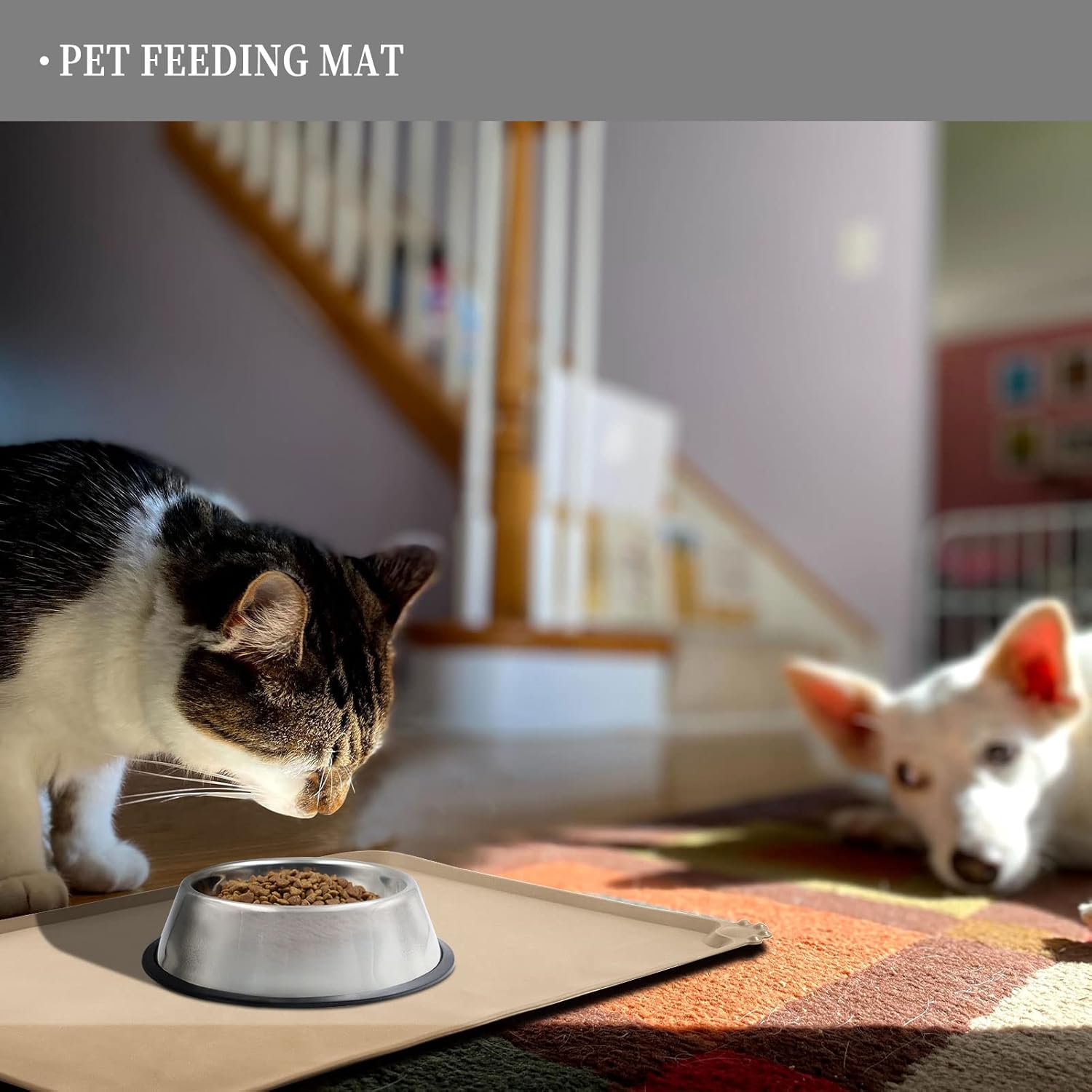 - Anti-slip design: our non-slip pet feeding mat ensures stability for your pet's bowl, preventing any water stains or spills on the floor. Enjoy peace of mind when feeding your pet, knowing that their food stays in place
