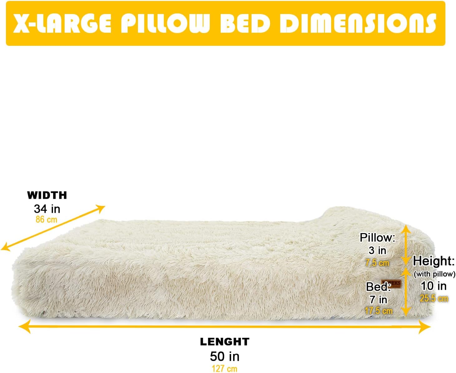 KOPEKS Orthopedic Memory Foam Dog Bed 7" Inch Thick Extra Large Dog Bed with Pillow Fluffy Brown 50"x34"x10" Includes Waterproof Liner & Durable Removable Cover with Smart Design