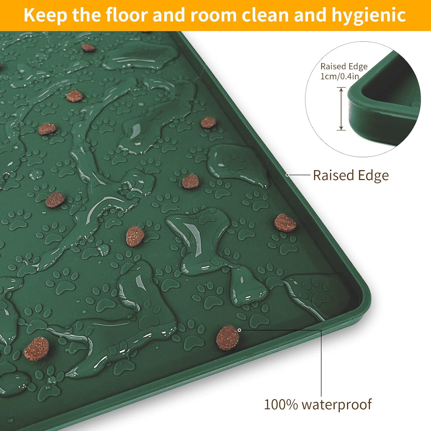 - [Protect the floor] The anti-overflow design on the edge and the material of the placemat can effectively prevent pets from soiling your floor during eating
