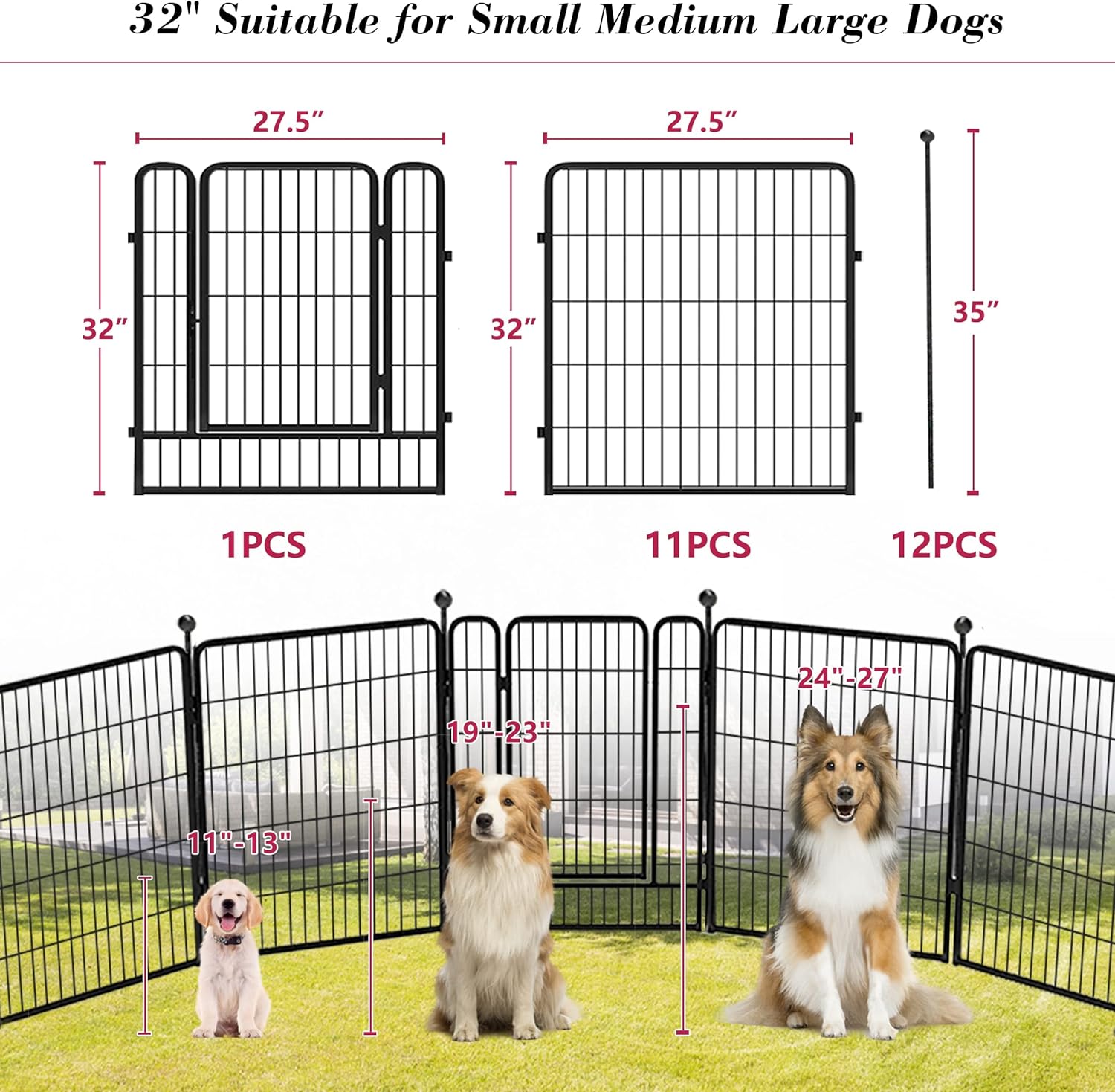 Dog Playpen 32 inch 12 Panels Indoor Dog Pen for Medium/Small Dogs Heavy Duty Metal Dog Fence Outdoor for Yard, Puppy Playpen with Door Portable Pet Fence for RV Camping Yard