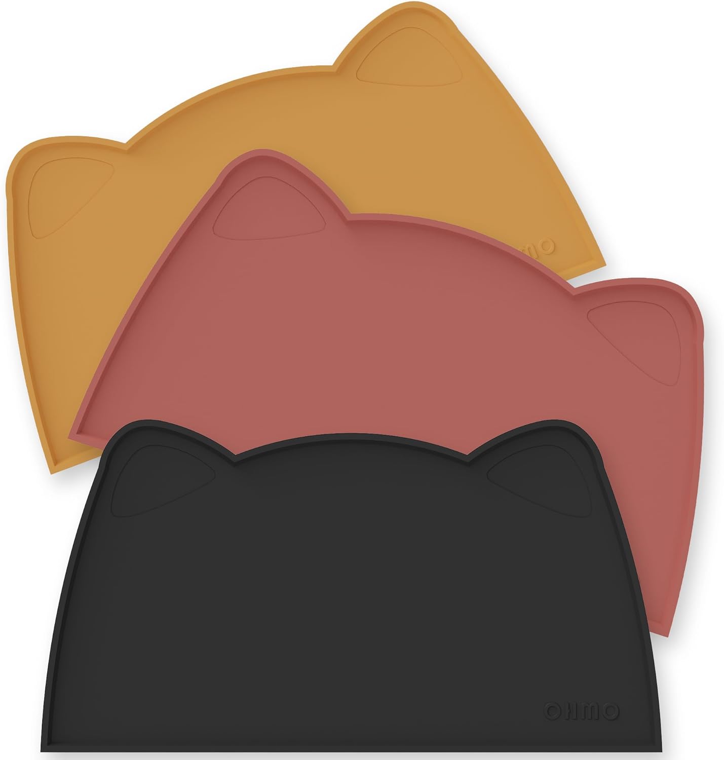 OHMO - Cat Food Mat, Silicone Pet Feeding Mat for Floor Non-Skid Waterproof Dog Water Bowl Tray, Easy to Clean Pet Placemat (Black, 18 * 9.8'')