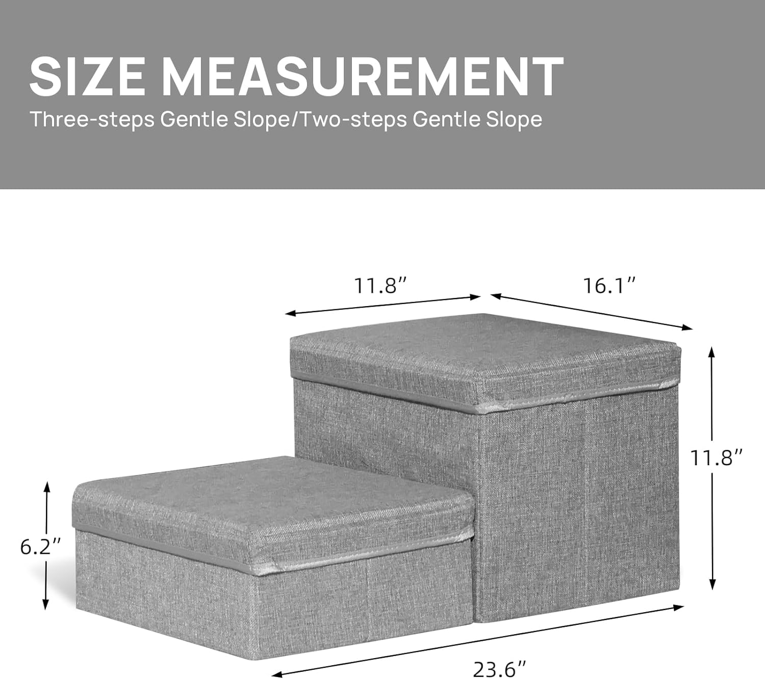 Foldable Dog Stairs/Steps 2-Tier Pet Steps Storage and Adjustable Steps for Small Medium Dogs Pet Steps Storage Stepper for High Beds Sofa Pet Dog Cat (2 Step-Light Grey)