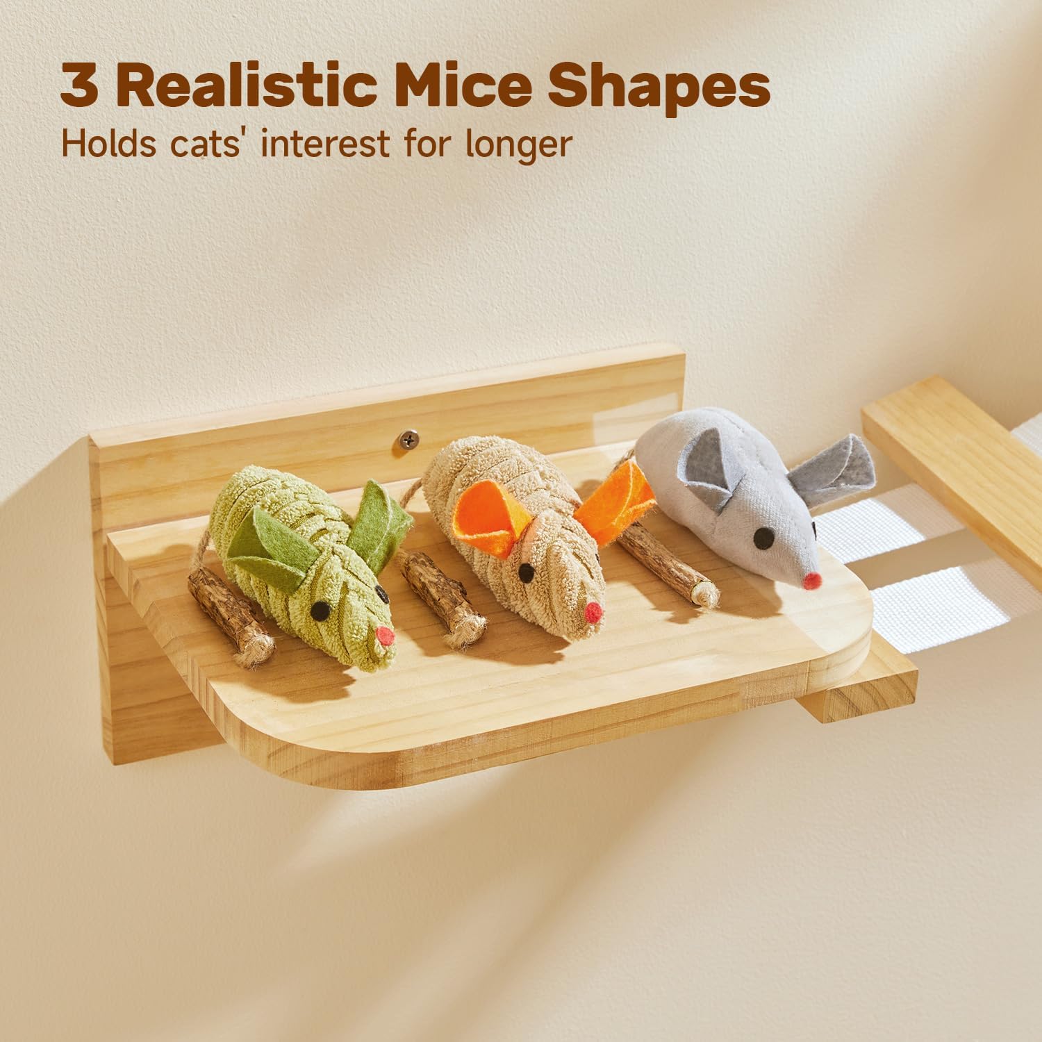 Potaroma Cat Toys: 3pcs Squeak Mice Interactive Catnip Silvervine Animals for Indoor Kittens - Dental Matatabi Cat Nip & Chew Exercise Toy for All Breeds & Species