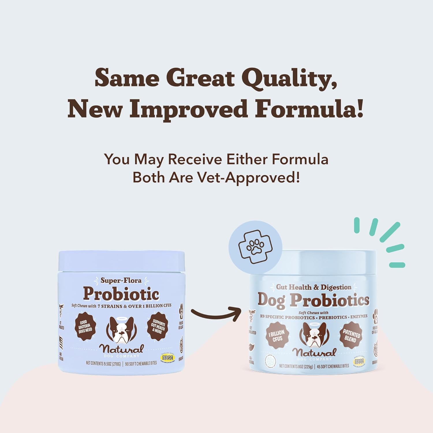 Natural Dog Company Gut Health & Canine Specific Probiotics Chews, 1 Daily Chew for All Dogs, Prebiotics & Digestive Enzymes for Digestion, Gas, Loose Stool, Immune System & Bowel Support