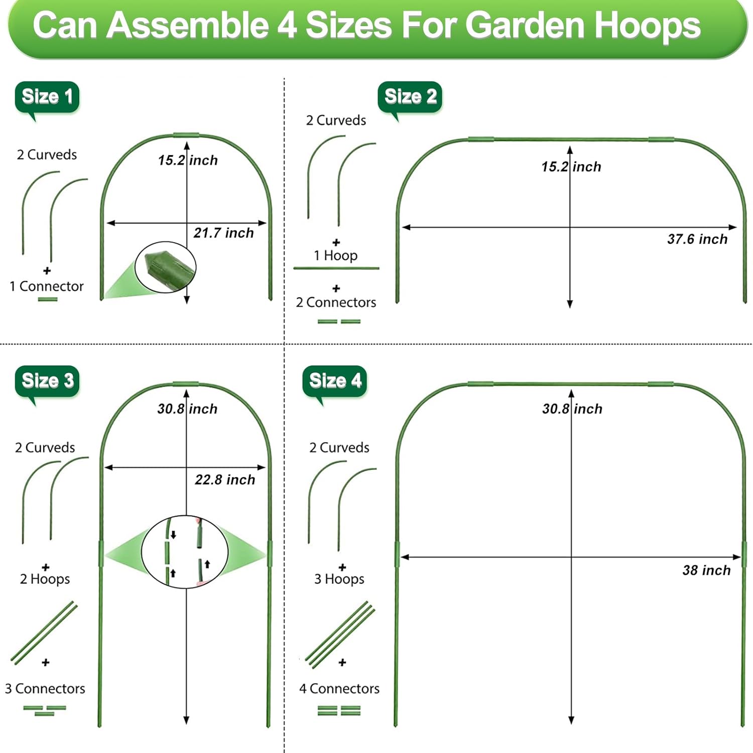 - [ Free DIY ] Garden netting and hoops can adjust the right size according to the height and width of your plants. Garden netting can be cut to the right size with scissors, and hoops can be combined with different components to assemble into multiple sizes. Everything follows your plants.