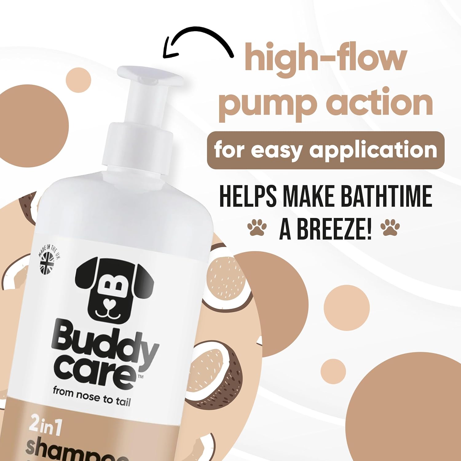 2in1 Dog Shampoo & Conditioner by Buddycare | Coconut Scented | with Aloe Vera and Pro Vitamin B5 (33.8oz)