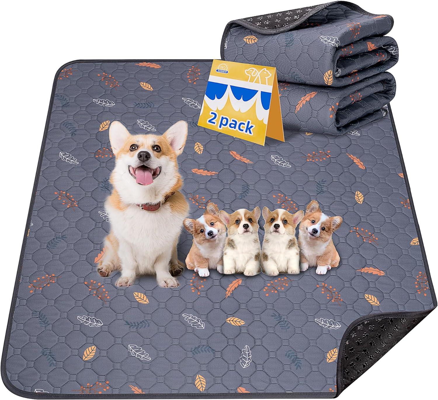 Washable Pee Pads for Dogs - 2 Pack Puppy Pads with Super Absorbent, Non-Slip, Reusable Pee Pads Specifically Designed for Dog Playpen, Crate, Whelping Box, Floor - 36" x 41", Grey