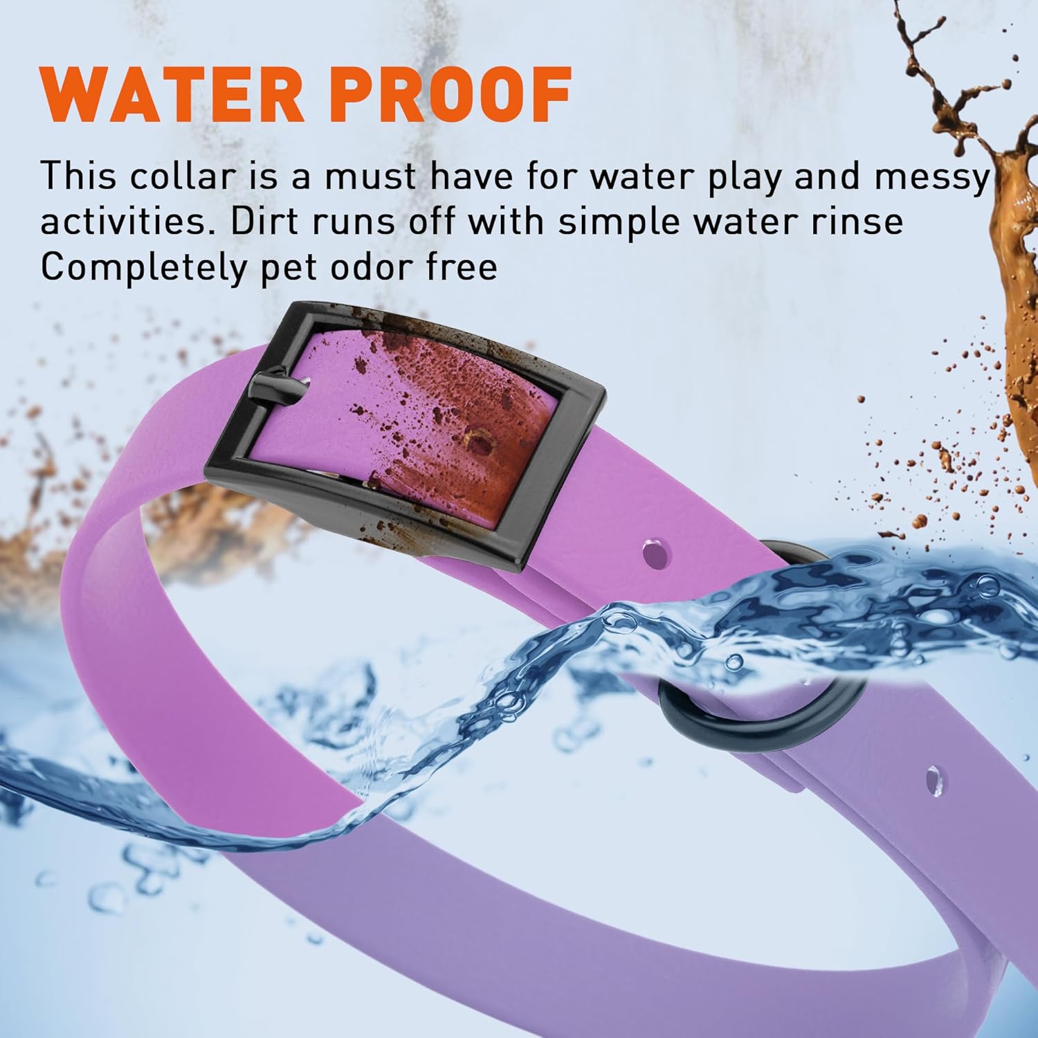Dogline Biothane Waterproof Dog Collar Strong Coated Nylon Webbing with Black Hardware Odor- Proof for Easy Care Easy to Clean High Performance Fits Small Medium or Large Dogs, Amethyst Purple