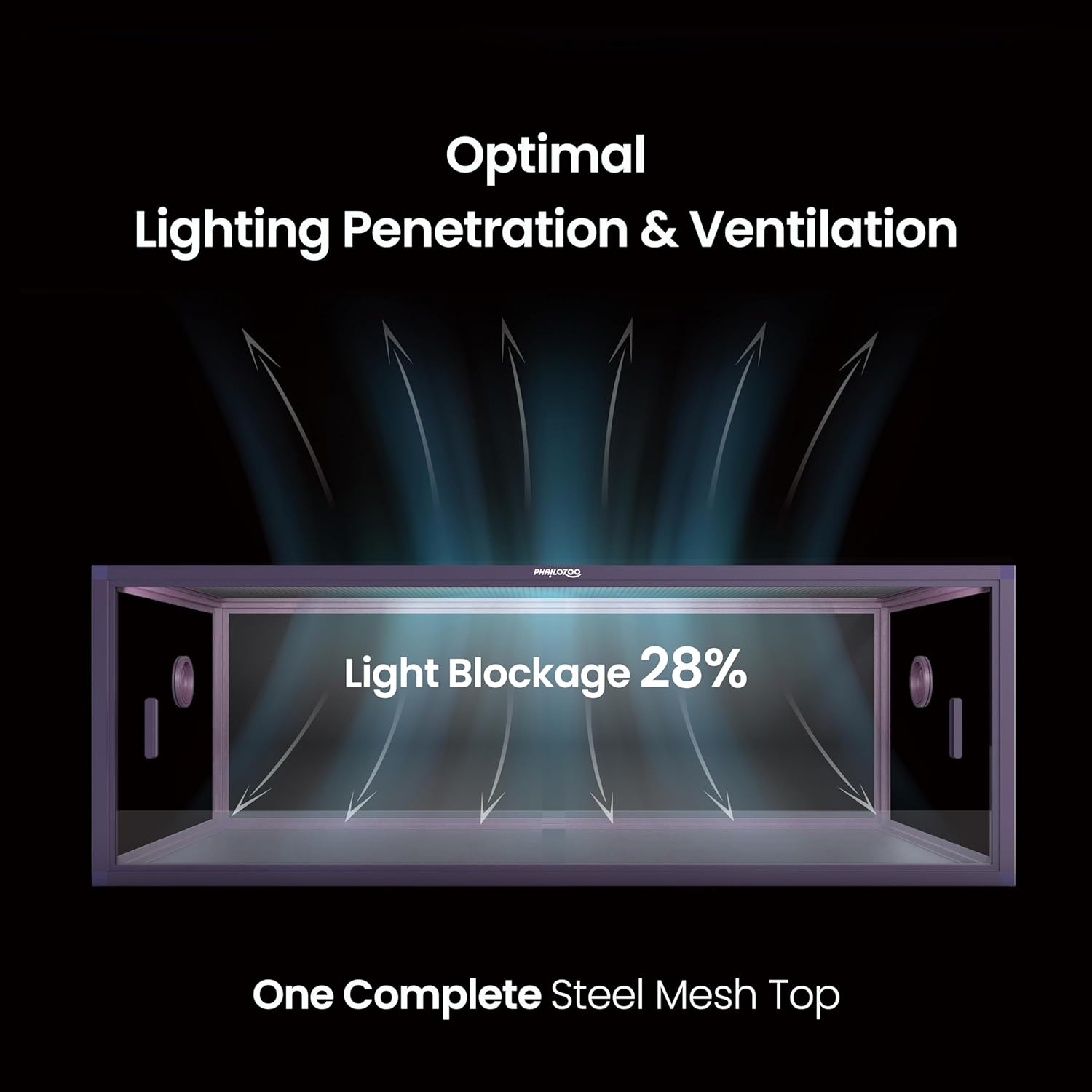 - ăHighly AdaptiveăWell-lit screen top with only 28% blockage. Compatible with many reptile accessories and equipment, such as heat lamps for reptiles, reptile humidifiers, reptile misters, reptile foggers, reptile UVA and UVB. Our reptile terrarium is great for holding temps and humidity.