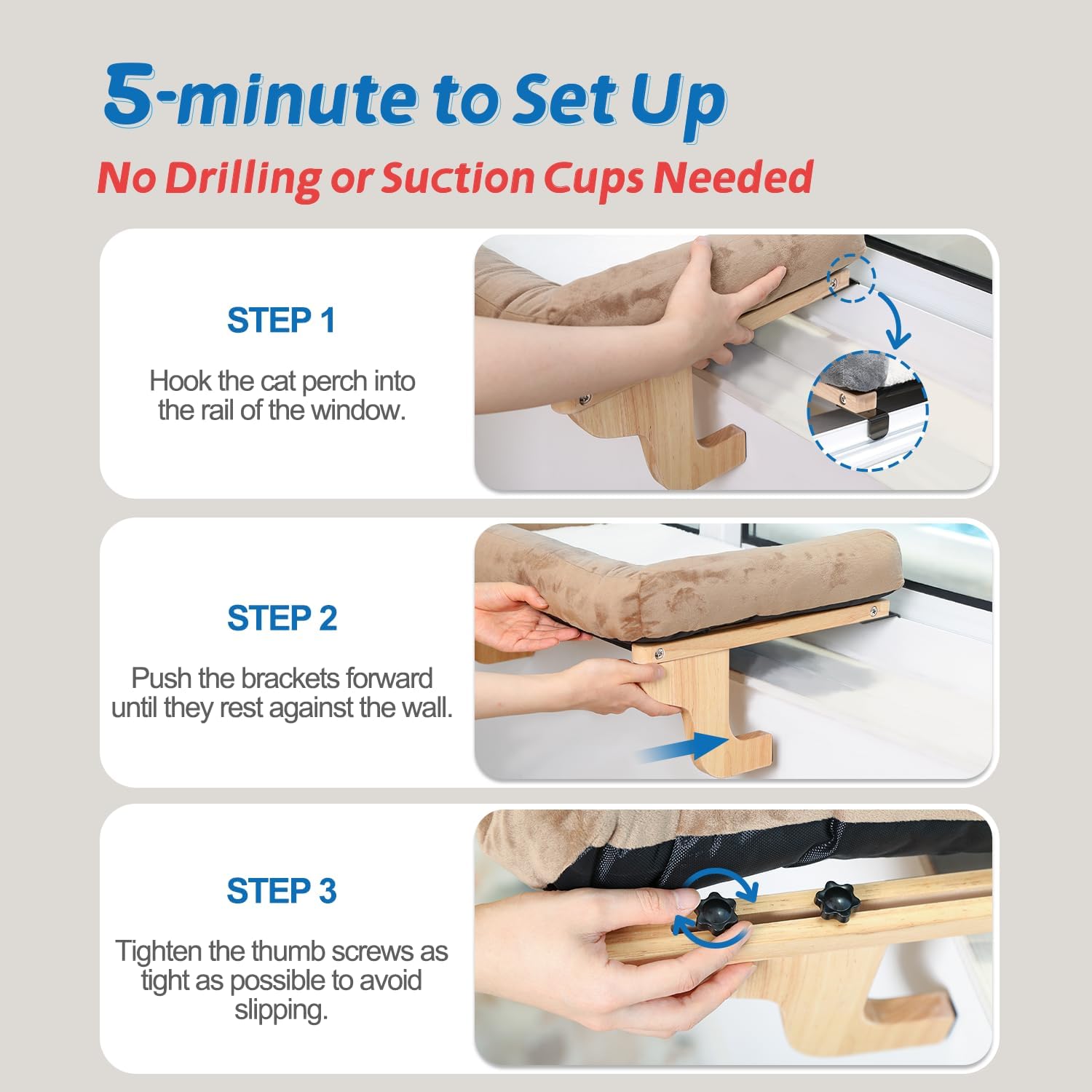 - 【Sturdy Build & High Quality Material】Our cat window perch is crafted from premium hardwood and machine washable fabric. Rest assured that your cat can safely perch by the window without any wobbling or tilting.