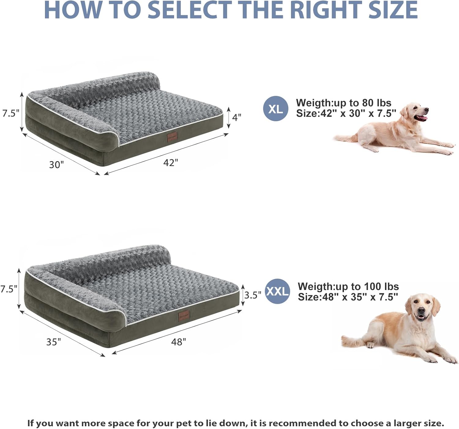 • L-SHAPED DOG BED: This X large dog bed adopts L shaped design, the dog beds Soft and comfortable rails provide extra support for our pet's head and neck, and the dog sofa bed has no railings on two sides, providing plenty of room for pets to stretch out. The dog beds for large dogs allow pets to be more soothed and relaxed and to fall into a deep sleep.