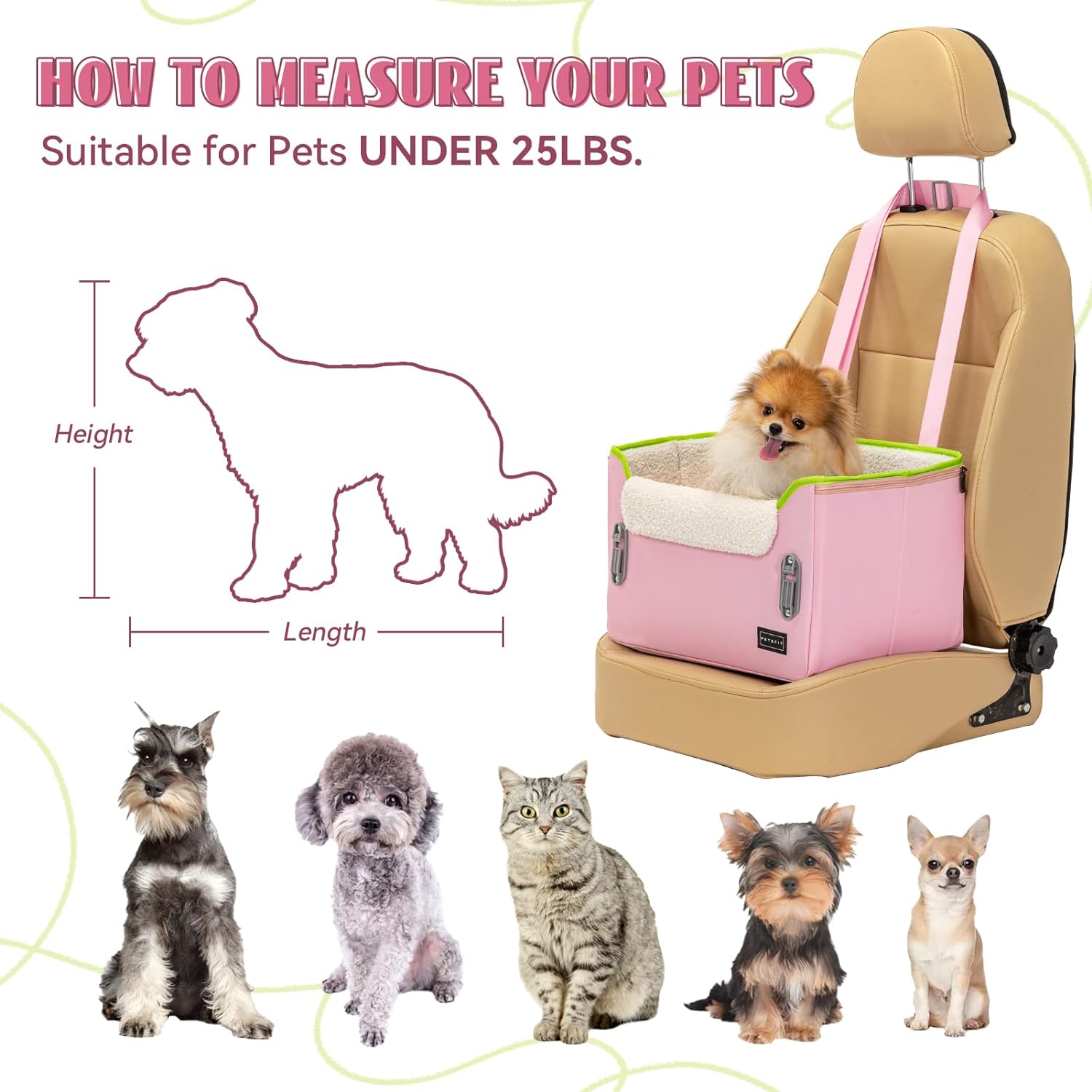 PETSFIT Small Dog Car Seat, Patent Safe Buckles Dog Booster Car Seat, Cat Car Seat with Safety Belt, Suitable for Small Pets Up to 25lbs (Pink)