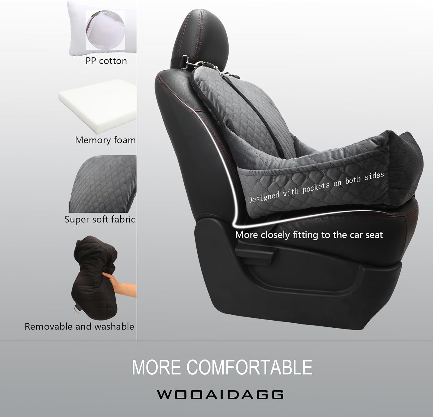 - Comfortable:Wooaidagg dog seat made in ultra-soft short plush fabric and filled with PP cotton and memory foam,our dog car bed design ensures a snug fit with your car seat,we dog car seat ensuring their utmost comfort and reducing anxiety and fatigue