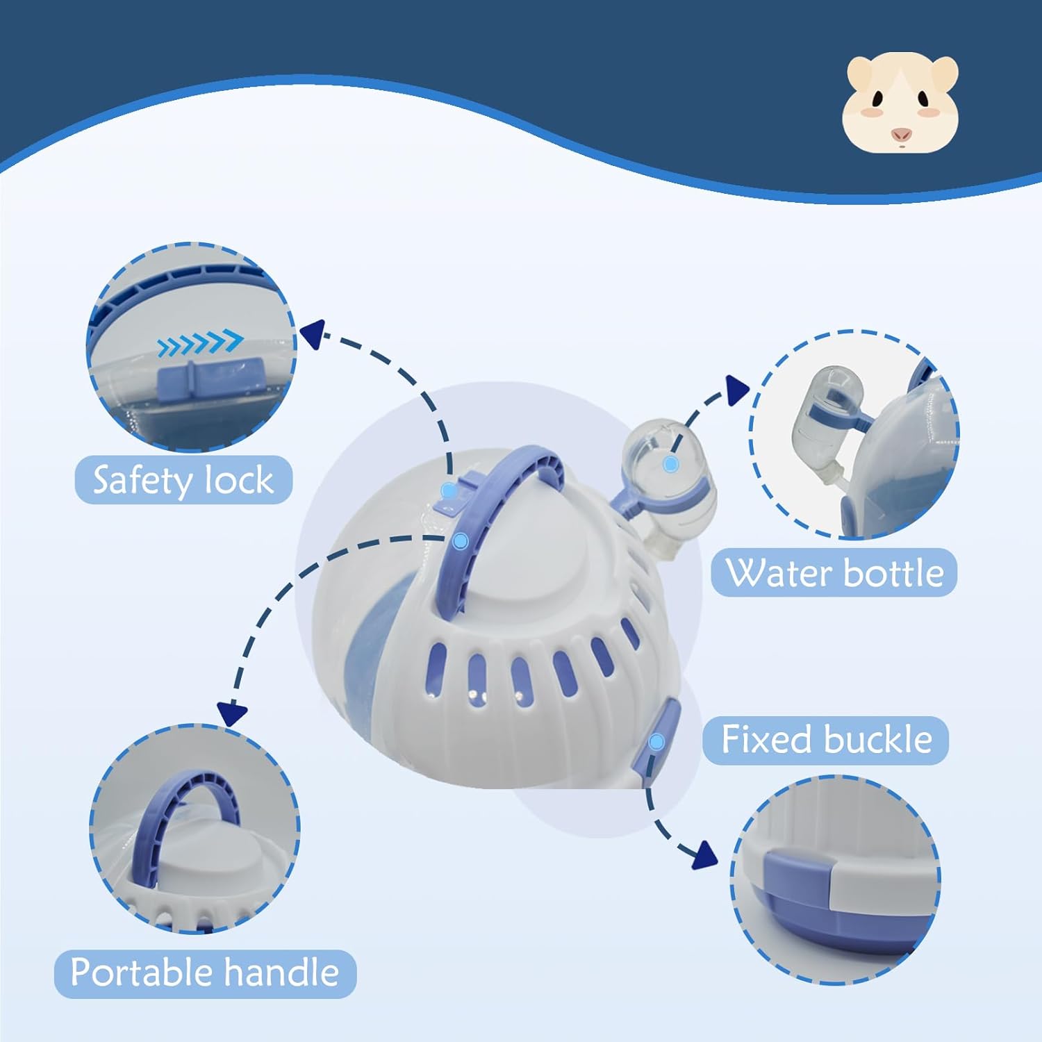 - Ventilation:The ventilation design at the top of the hamster cage increases air circulation,allowing your hamster to breathe smoothly and freely,Travel is more reassuring, meeting the natural exploration and hiding needs of hamsters
