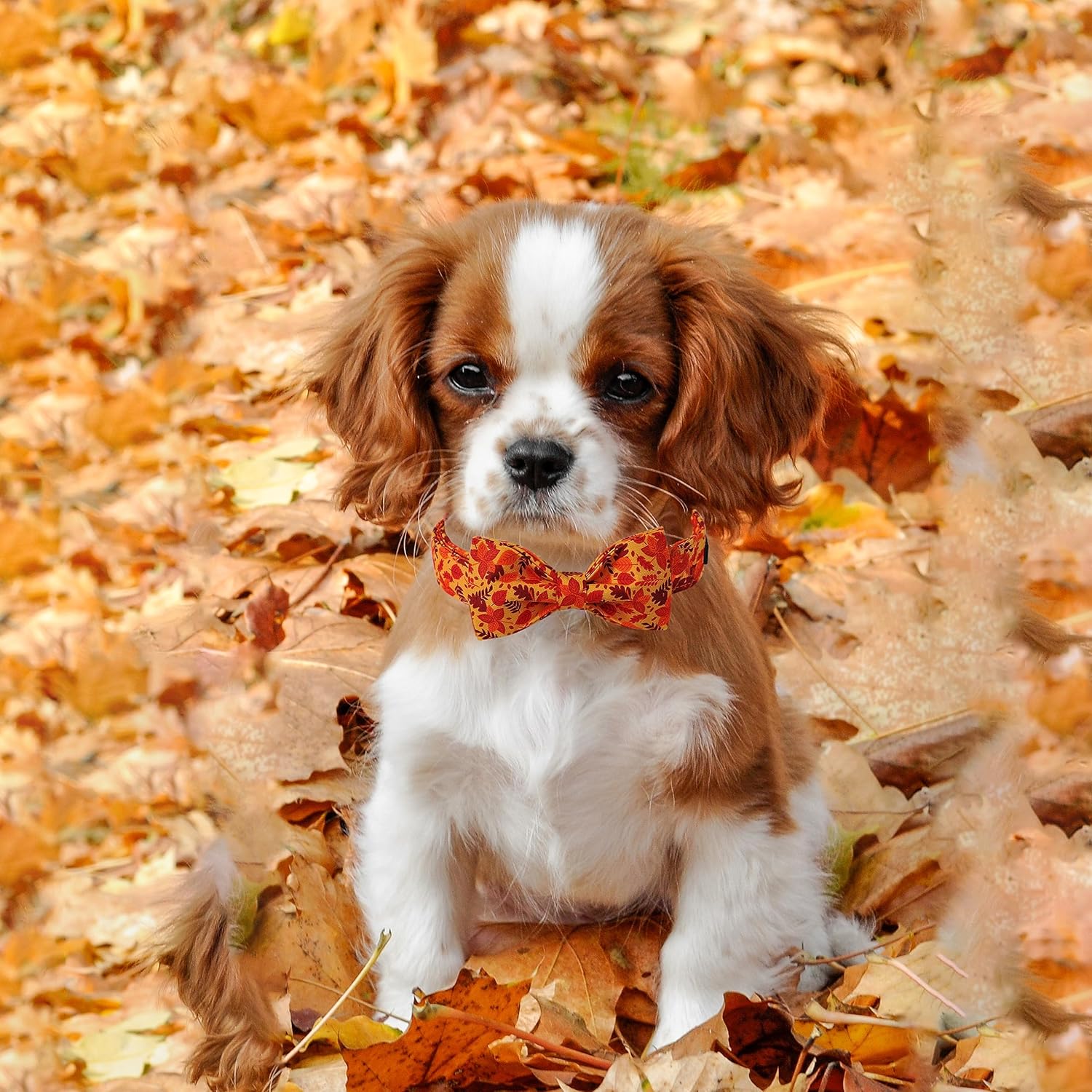 Lionet Paws Dog Collar with Bowtie - Cute Cotton Adjustable Fall Bowtie Dog Collar with Metal Buckle for Small Medium Large Dog Girl Boy Gift, S, Neck 10-16in