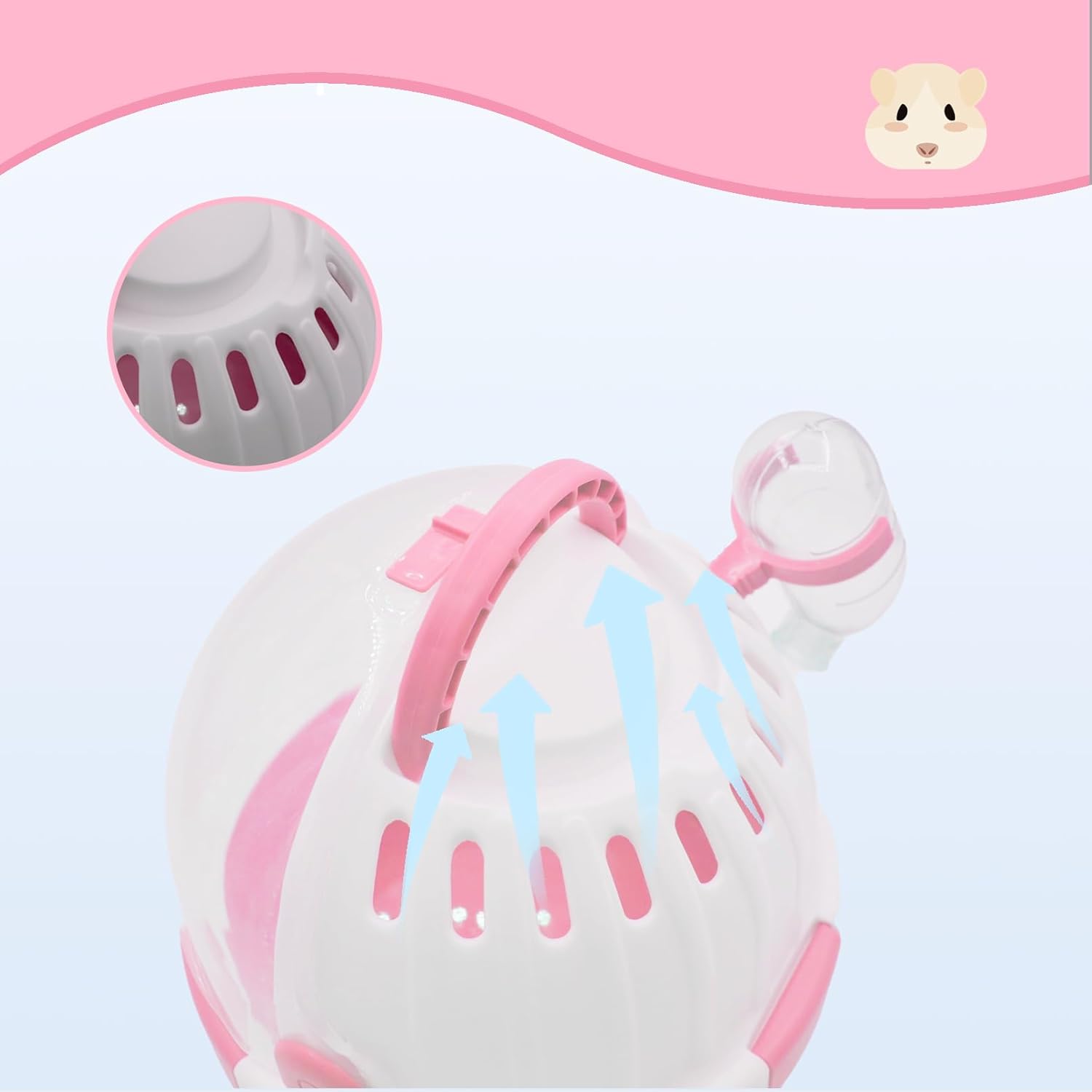 Hamster Carrier Cage Portable Cages Small Animals Carry Travel Case with Water Bottle Plastic Breathable Guinea Pig Outgoing Cage for Dwarf Hamster Ferret Chinchillas Hedgehog (Pink)