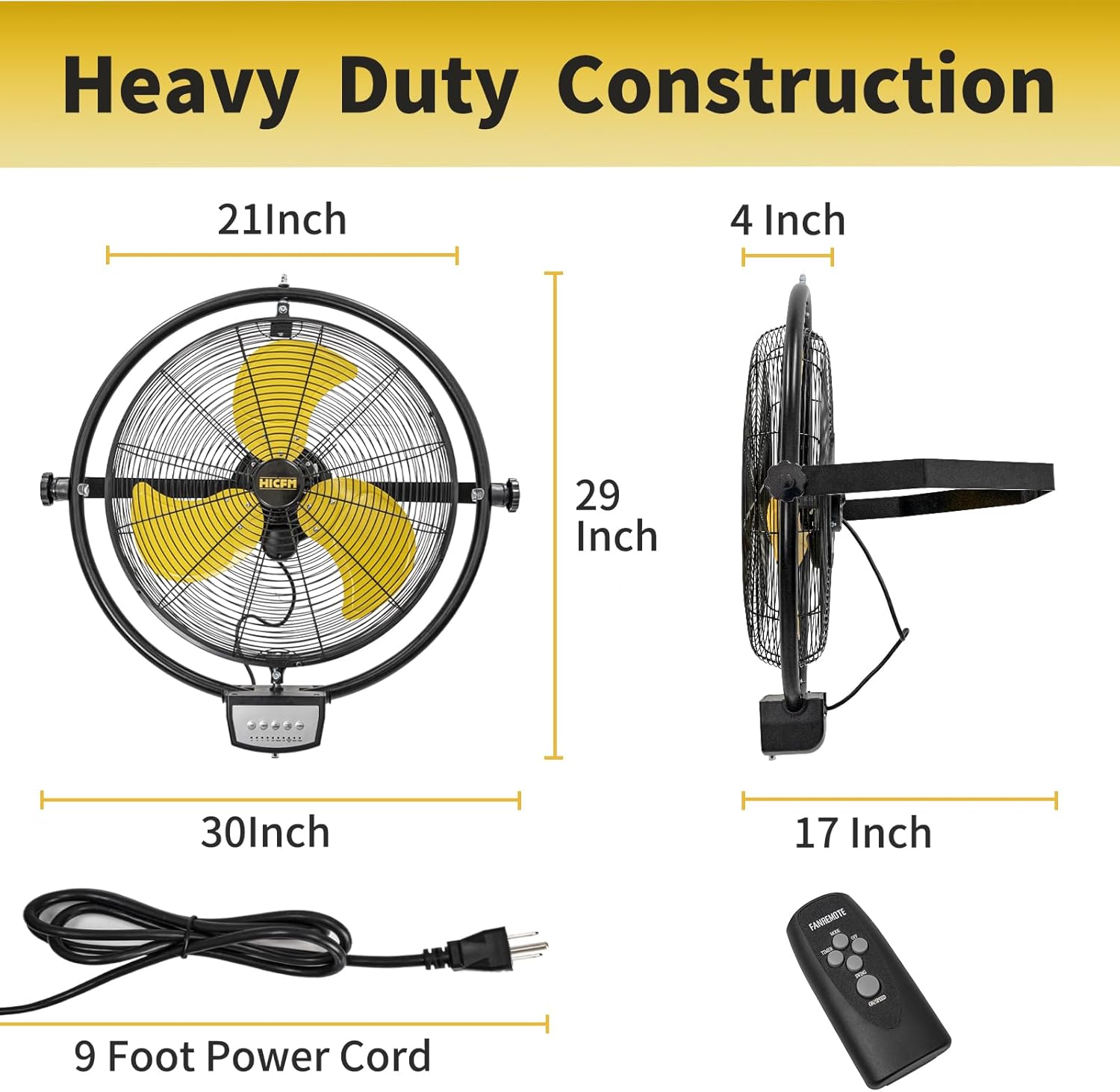 HiCFM 20" Remote Control Wall Mount Fan, 5100 CFM High Velocity 3-Speed Oscillating Wall Fans with Timer for Industrial, Commercial, Warehouse, Garage, Gazebo and Patios - UL Listed