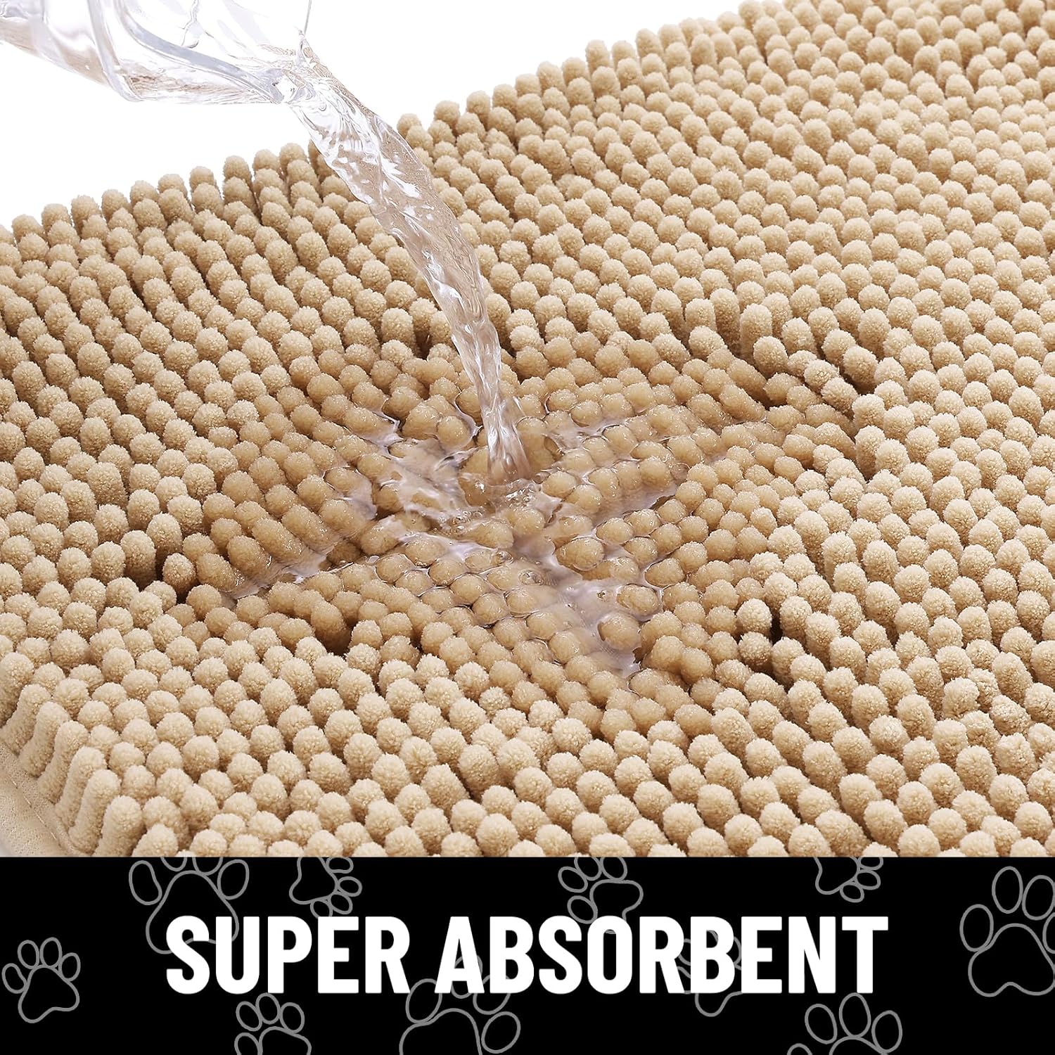 Smiry Dog Door Mat for Muddy Paws, Absorbent Dirt Trapper Non Slip Quick Dry Washable Chenille Mat for Mud Dogs, Entry Rug for Indoor and Outdoor (48x30 Inches, Beige)