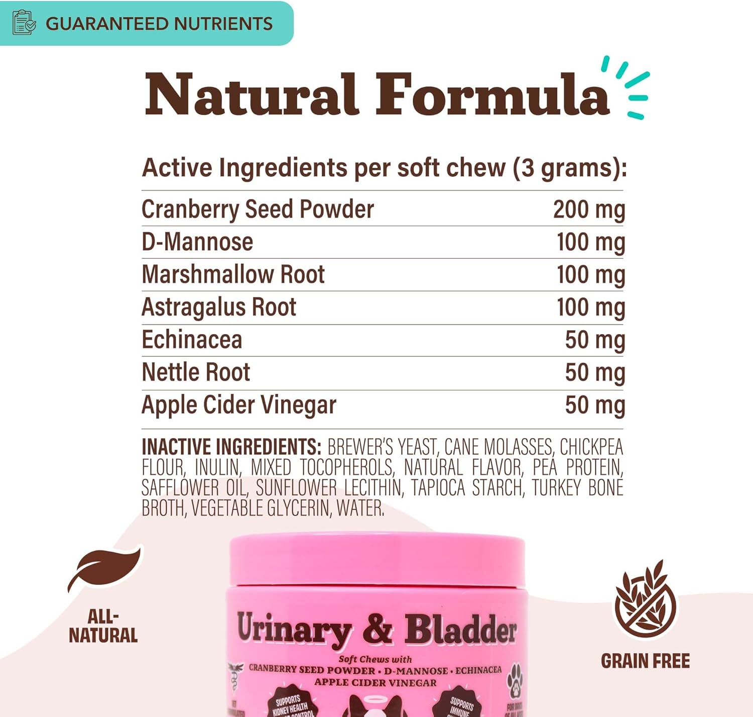 Natural Dog Company Urinary & Bladder Supplement for Dogs – Cranberry & D-Mannose Soft Chews with Marshmallow Root & Astragalus – Supports Urinary Tract Health, Bladder Function & Normal Urine Flow
