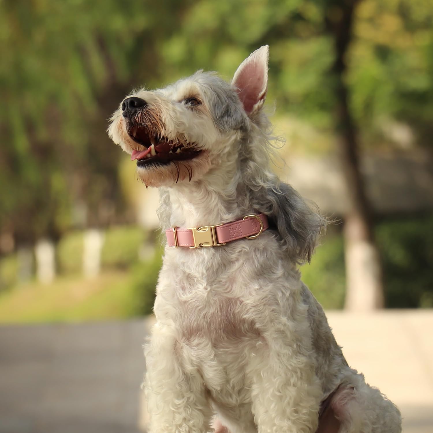 PET ARTIST Soft PU Leather Dog Collar, Bright & Classic Pink Dog Collar with Quick Release Rose Metal Buckle, Adjustable Nylon Padded Durable Pet Collars for Medium Dogs Girl, Neck Fit 13-19"
