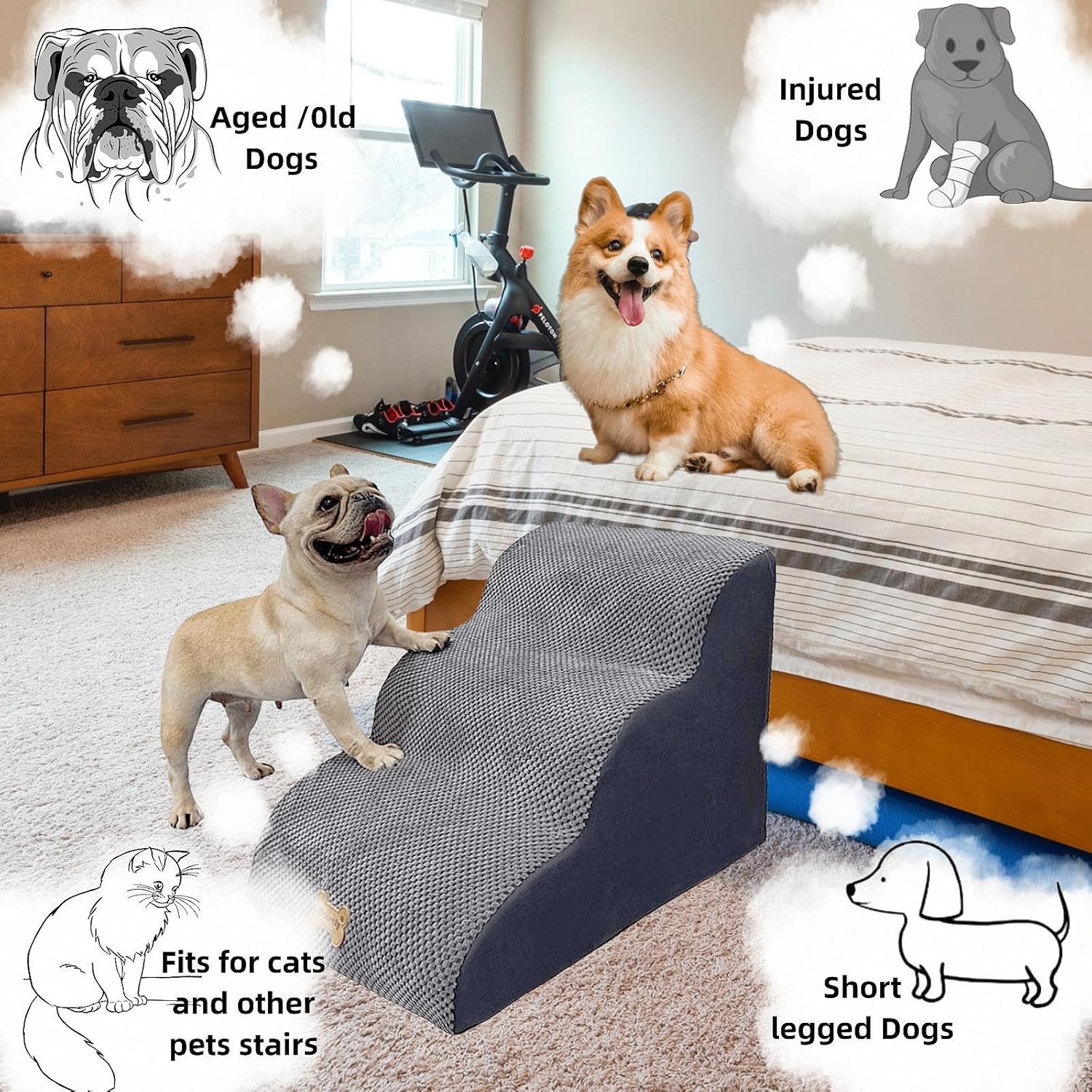 3-Step Dog Stairs for High Beds & Couches Multi-Step Non-Slip Pet Steps with Balanced Ramp Indoor 2 3 4 5 Step Stairs for Small to Large Dogs and Cats Non-Slip Stickers 30D Grey