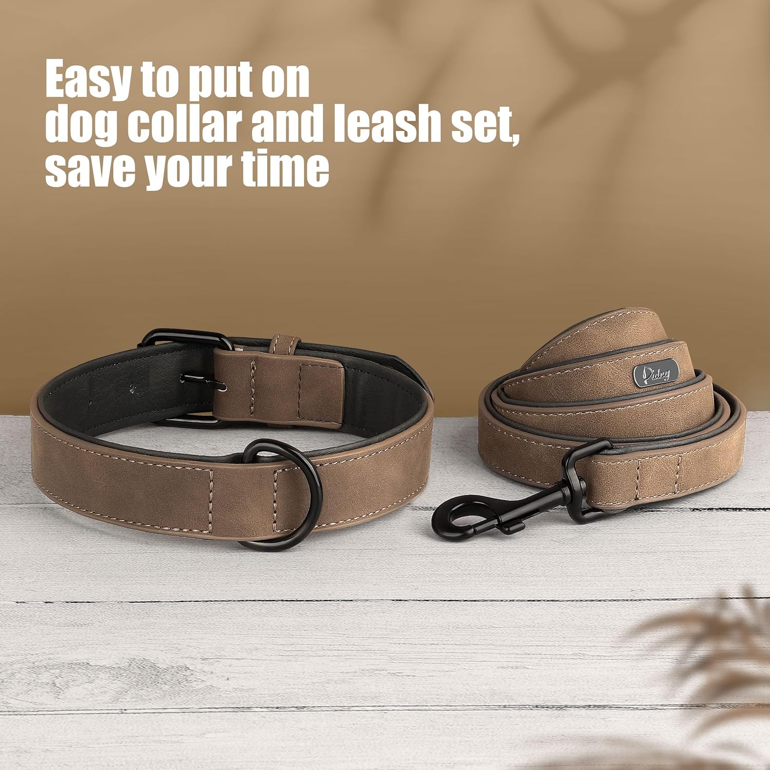 Didog Soft Padded Leather Dog Collar and Leash Set, Adjustable Dog Leash and Collar Set with Metal Buckle, Breathable Dog Collars with 4FT Leather Dog Leash for Small Medium Large Dogs, Brown, XL
