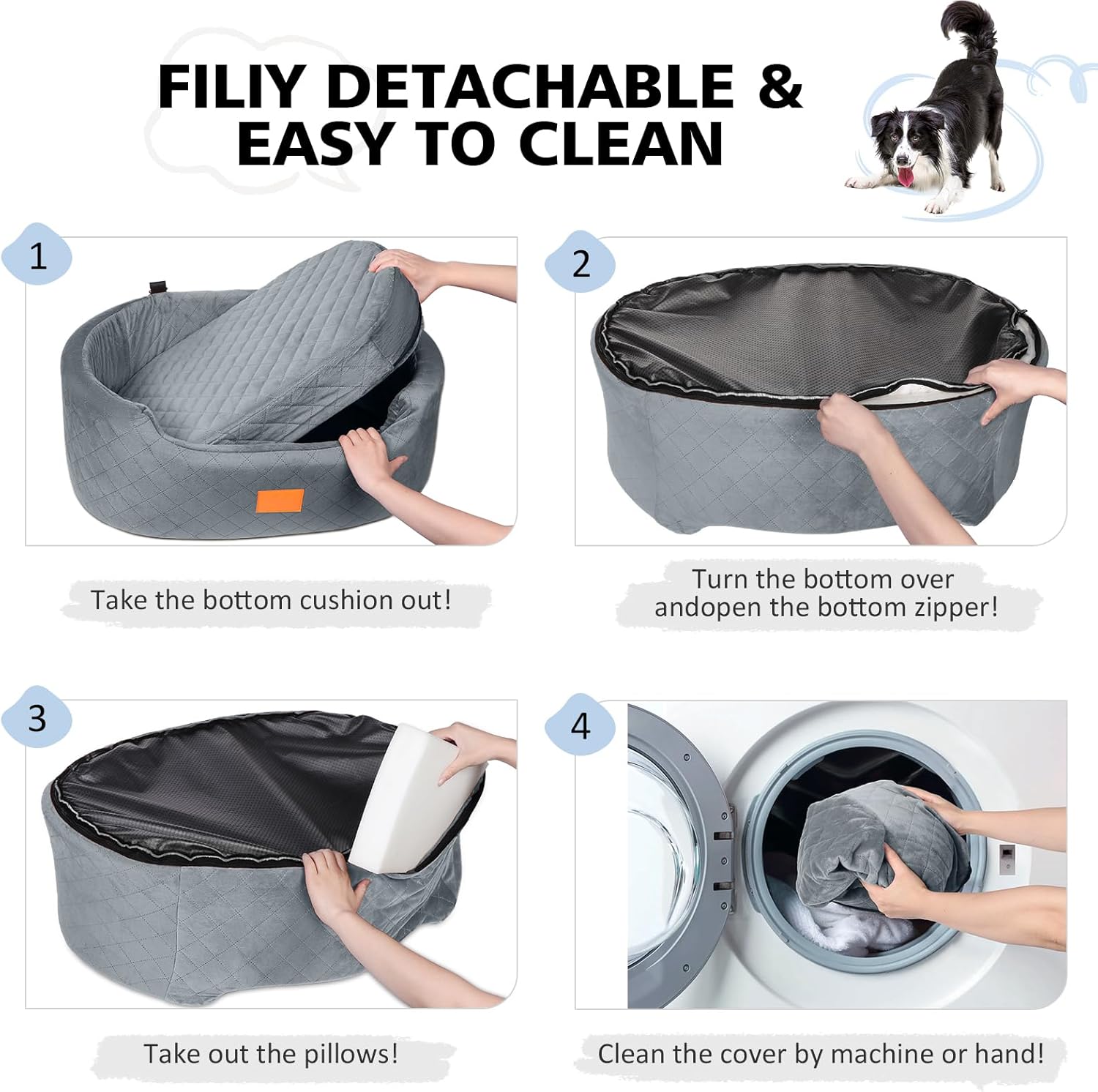 - Easy Installation & Detachable: Installing the dog booster seat is effortless. Simply insert the car belt through the two holes at the seat's bottom and adjust the buckle to secure it onto your car's rear seat. The dog seat is fully detachable, allowing you to open the zipper and remove the sponge for easy cleaning. The cloth cover can be machine washed, while the inner foam remains intact for continuous support. Remember, the inner foam is not washable.