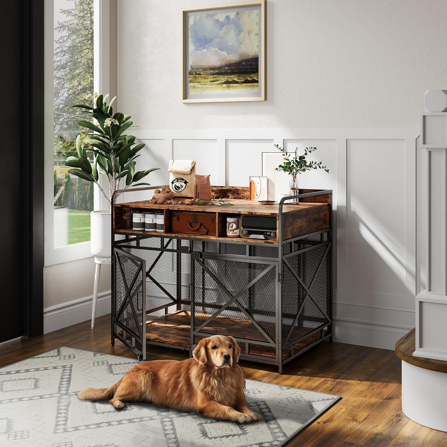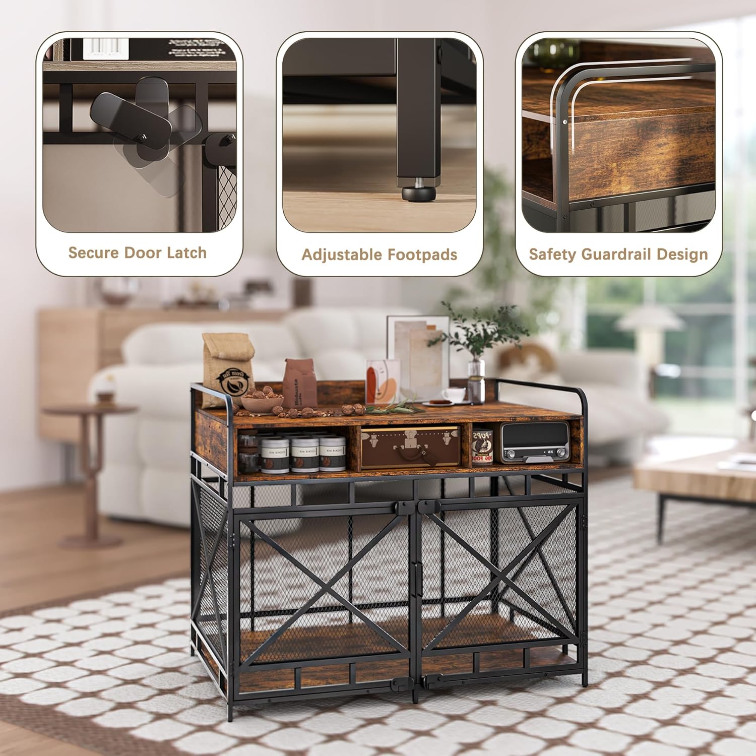 - Chew-Proof & Heavy-Duty Construction: Built to Resist Even the Most Determined Chewers-Constructed with sturdy metal wire mesh and reinforced with a robust metal cross bold, our dog kennel furniture is designed to withstand chewing and tearing, providing a secure space for your pet. The xl dog crate furniture offers ample space for larger breeds, ensuring your dog has plenty of room to relax comfortably. This is the perfect solution for those looking for furniture dog crate large dog.