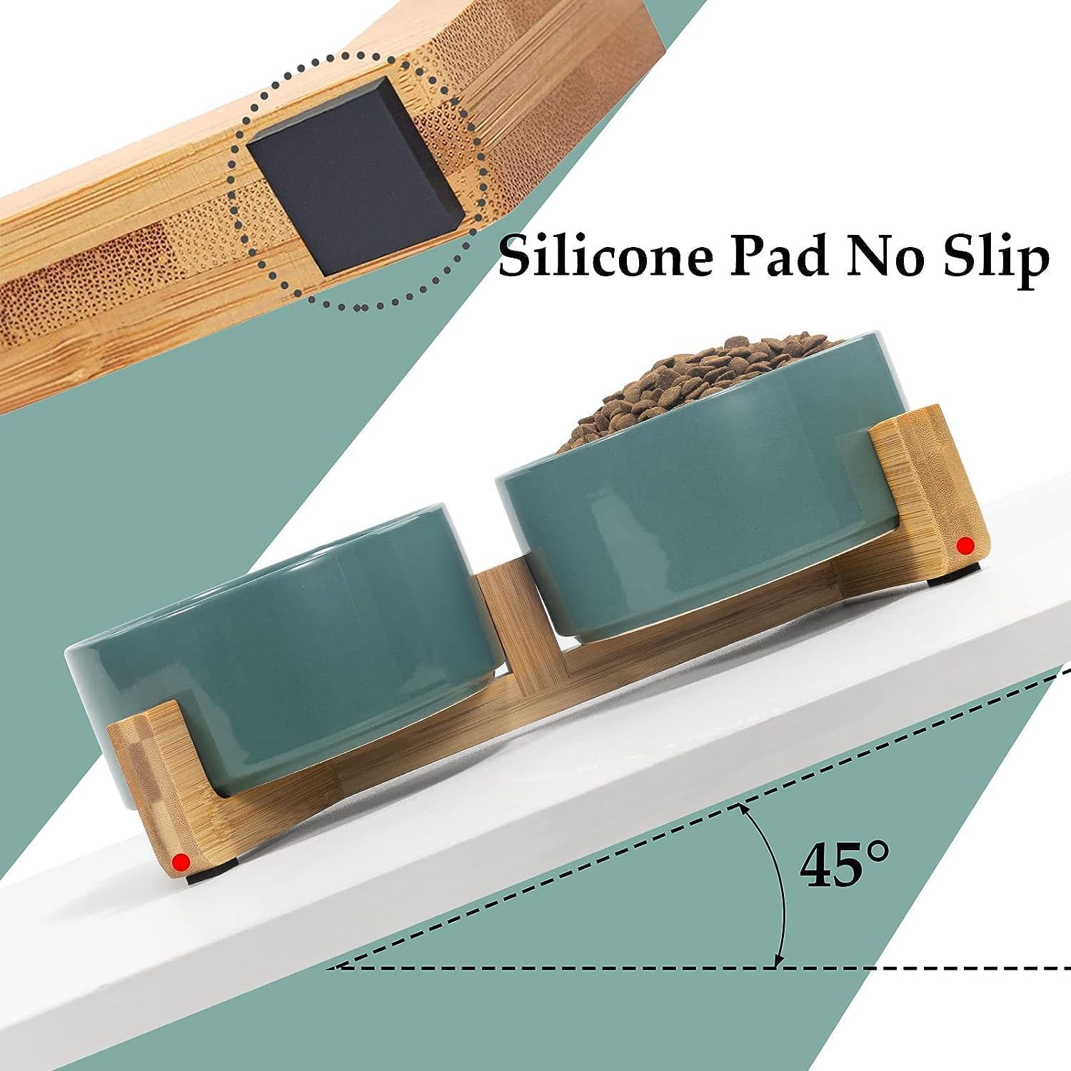 - [Double Bowl Design]:One dog bowl for food and one for water, Each ceramic cat bowl has a Unique wooden stand, raising the dishes closer to your pet for more comfortable eating