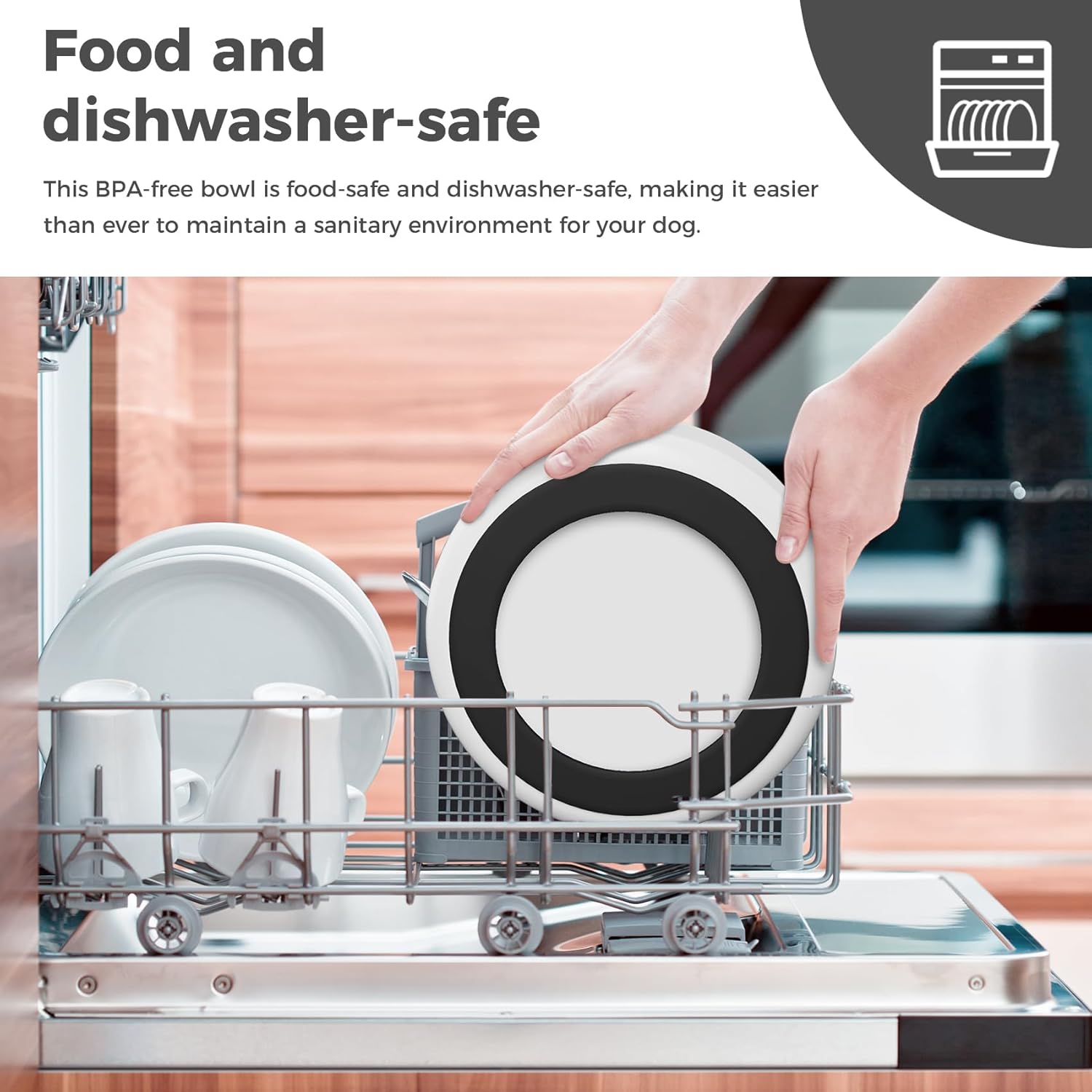 - Non-Slip: The bottom of our dog bowl is made of silicone and will not scratch the floor. Are you afraid that in a quiet resting environment, your pet will make a sound of rubbing against wood and tiles because it eats happily? Our dog bowl basically prevents this situation from happening