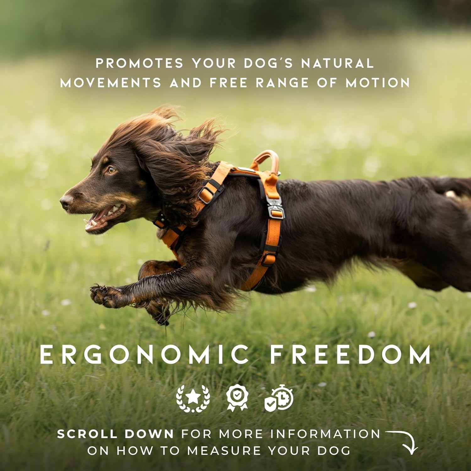 - ERGONOMIC FREEDOM β Engineered with an intentional Y-shaped design, the Explorer Harness promotes your dogβs natural movements and free range of motion. Our harness is constructed to ensure unrestricted mobility around your dogβs shoulders, supporting better posture and joint health.