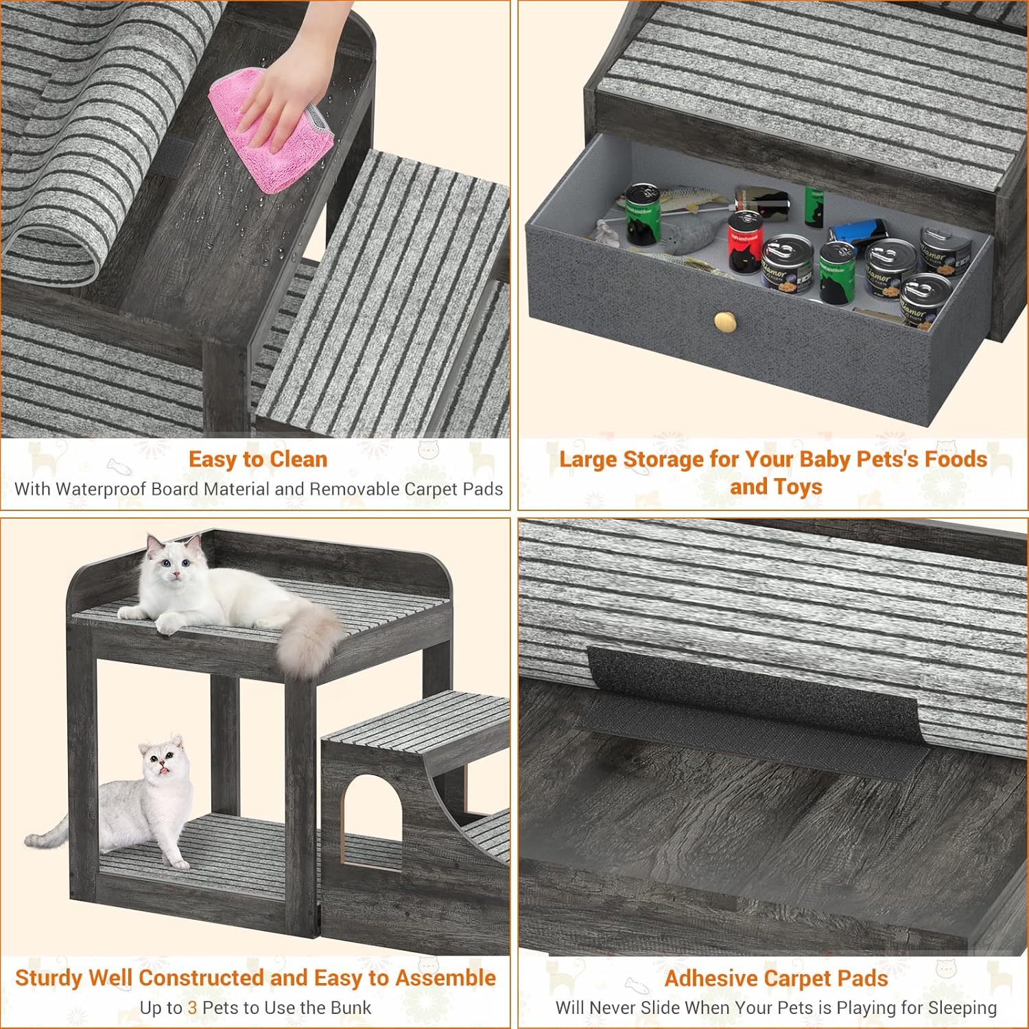 Cyclysio Super Large Multi-Level Pet Bunk Bed with Stairs, Mats, Drawers for Indoor Use, Grey