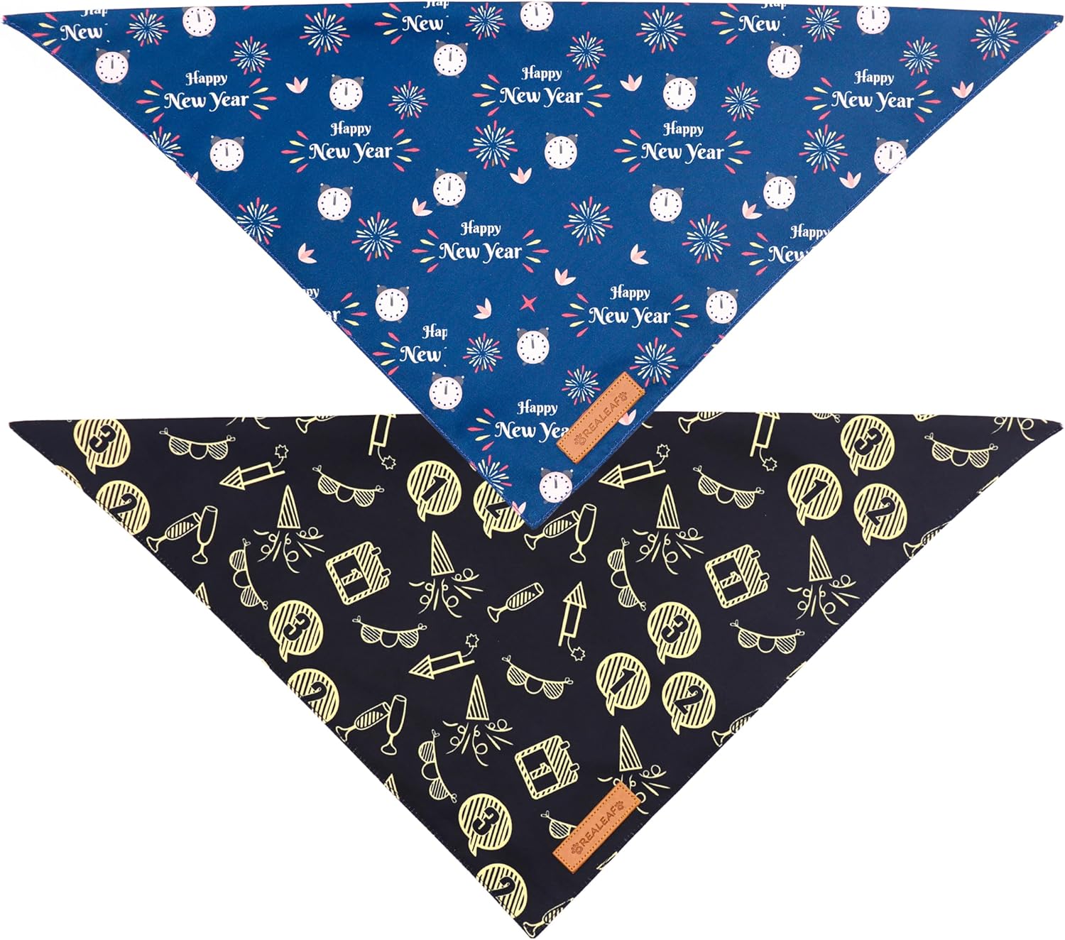 - [ HAPPY NEW YEAR DESIGN ]:Dog bandanas designed with happy new year patterns. Realeaf dog bandana make your pet show a different appearance.