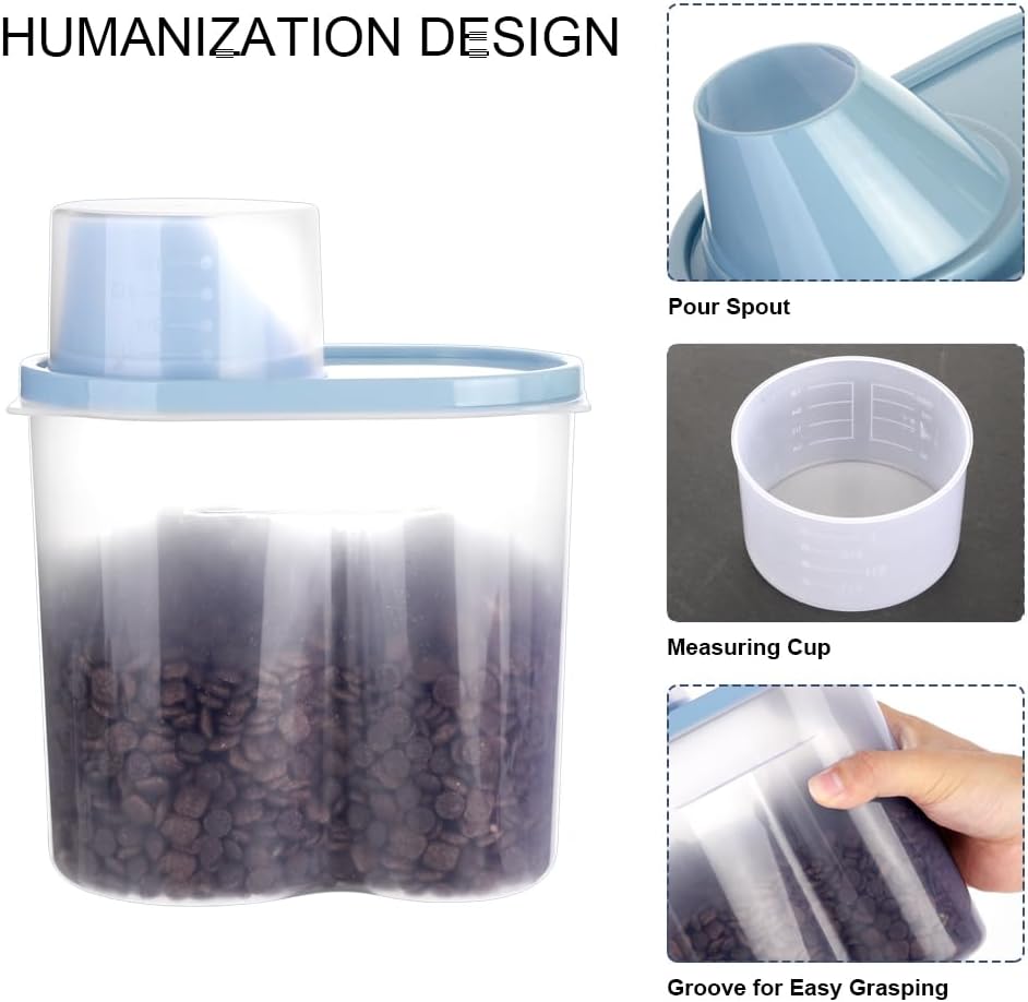 - [THE SHAPE OF FOOD STORAGE]- Designed for easy access to pet food for pouring.And the translucent body makes food be checked at a glance.