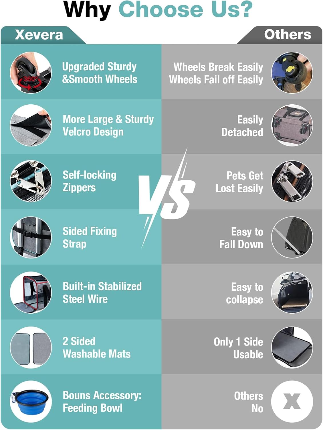 - More Sturdy and Convenient: The dog carrier with wheels is firmly structured to make sure its shape. Fixing strap in the side keeps the telescopic handle upright. 2 side storage pocket for pet treats and toys. A PET BOWL INCLUDED.