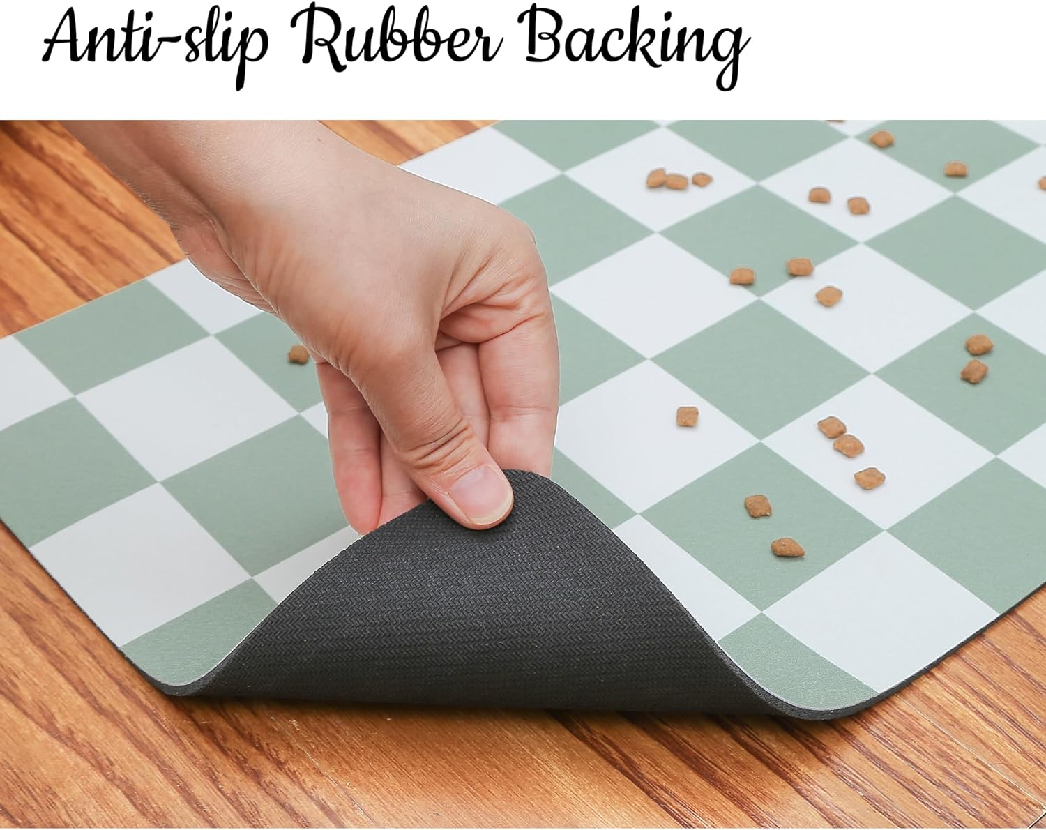 Ralxion Checkered Dog Feeding Mat, Absorbent Mats for Dog Food and Water Bowl, Dispenser, Modern Aesthetic Sage Green Checkerboard Pet Placemat for Dogs, Cats, Puppy, 16" X24”