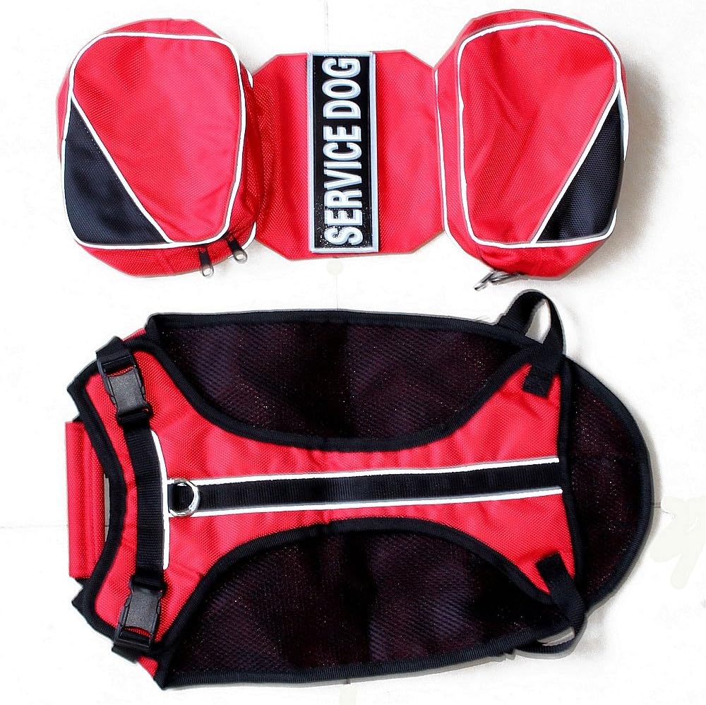 Serijoars Dog Vest Harnesses with Saddlebag Backpack for Camping & Travel - Reflective Hound Hiking Backpack Saddle Bag - Lightweight Vest Harness for Medium & Large Dogs (Red, M)