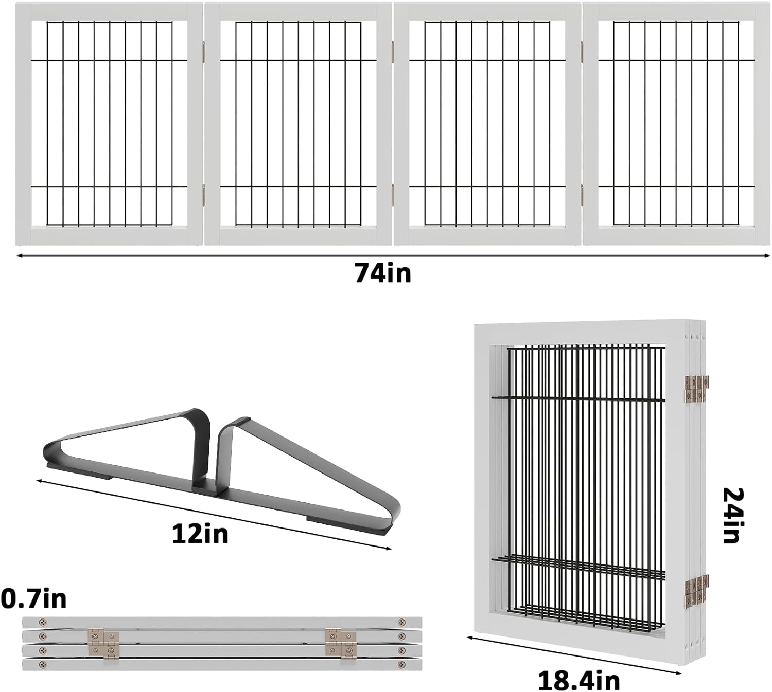 - [Decorative Room Gate] Smooth surfaces, solid-colored modern dog gate indoor, match with your home decor, incorporate into your home decor. suitable size fit most openings: 3 panel dog gate wide 55", 24"tall, 4 panel dog gate wide 74", 24"tall