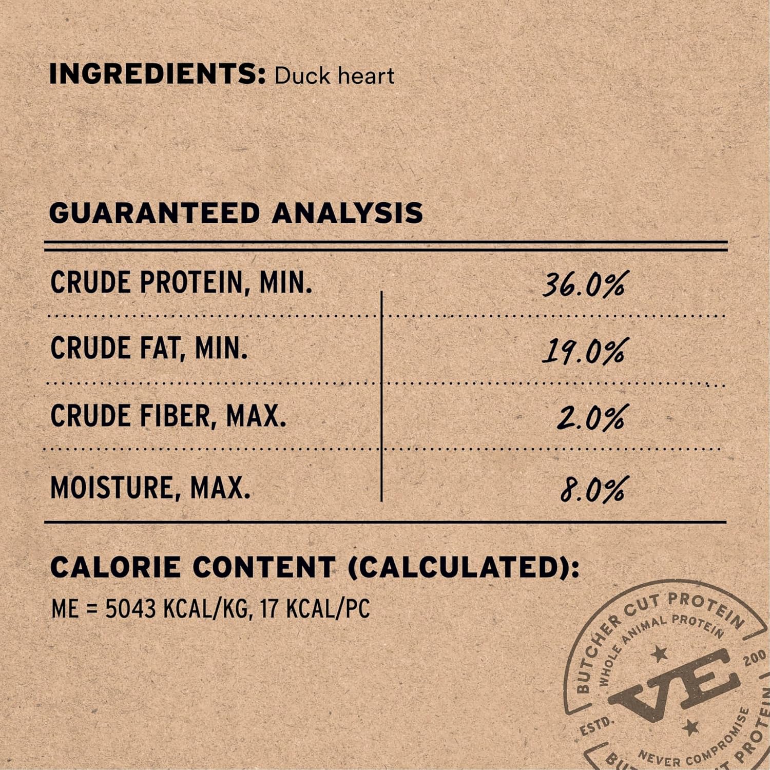 - FREEZE-DRIED RAW DUCK HEART DOG TREATS: Vital Essentials Freeze Dried Raw Dog Treats are a high-protein, low calorie treat that can help support your dog's overall health. These treats contain no artificial preservatives or additives. Duck Heart is the only ingredient.