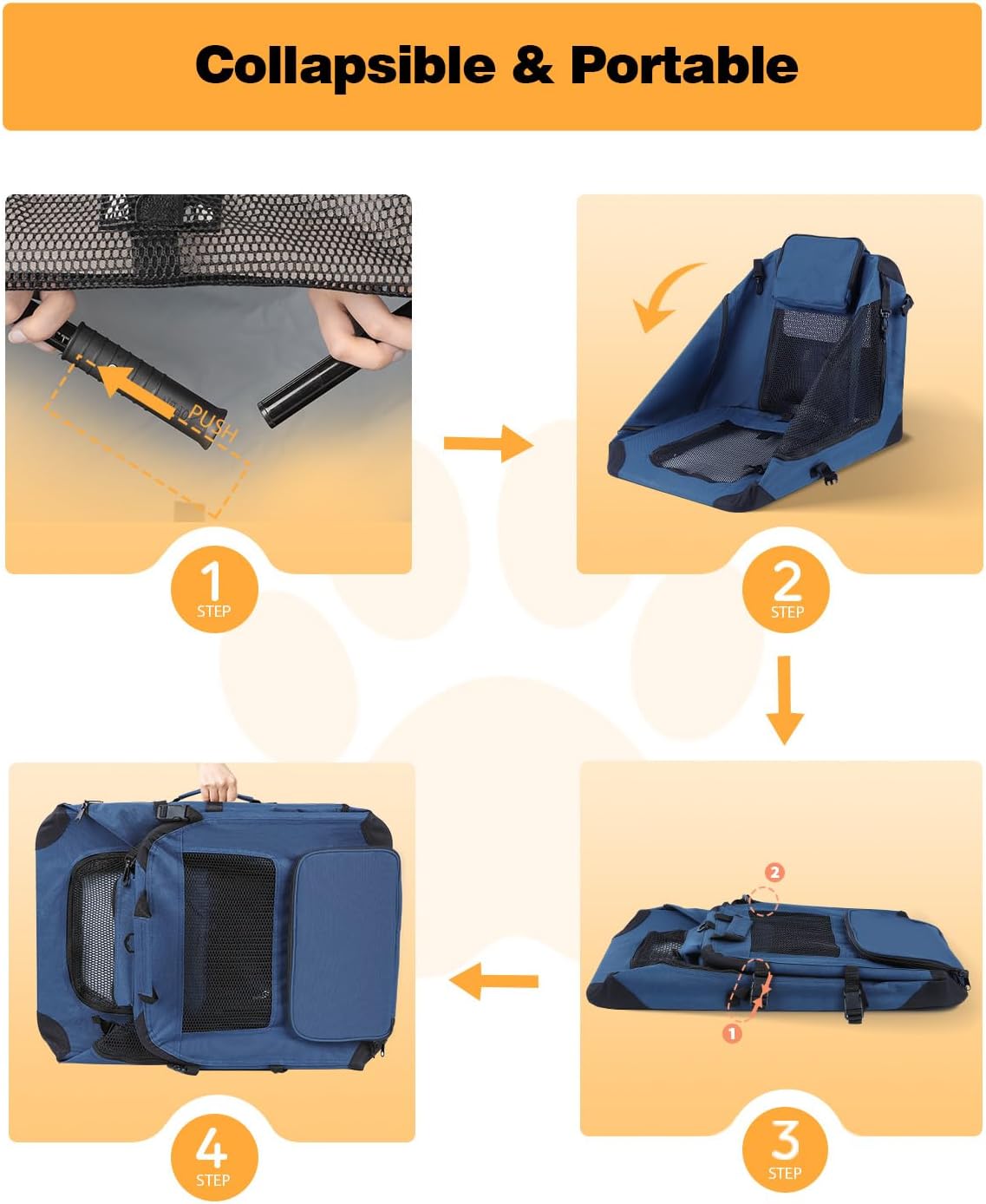 - 【Easy Assembly & Collapsible】This travel dog crate can be effortlessly assembled in 2 minutes, ensuring a stress-free experience for both you and your furry friend. When not in use, its collapsible design allows for compact storage, making it convenient to stow away under a seat or in any other confined space. Elevate your pet travel experience with this innovative and space-saving solution!